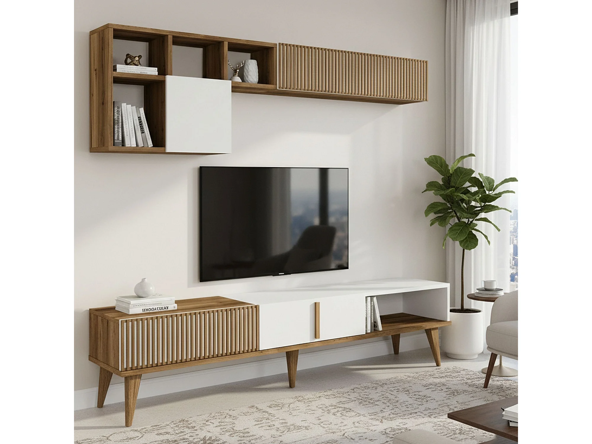 Parete Attrezzata Ostro, 11 Ripiani, 35x180x40h cm Bianco