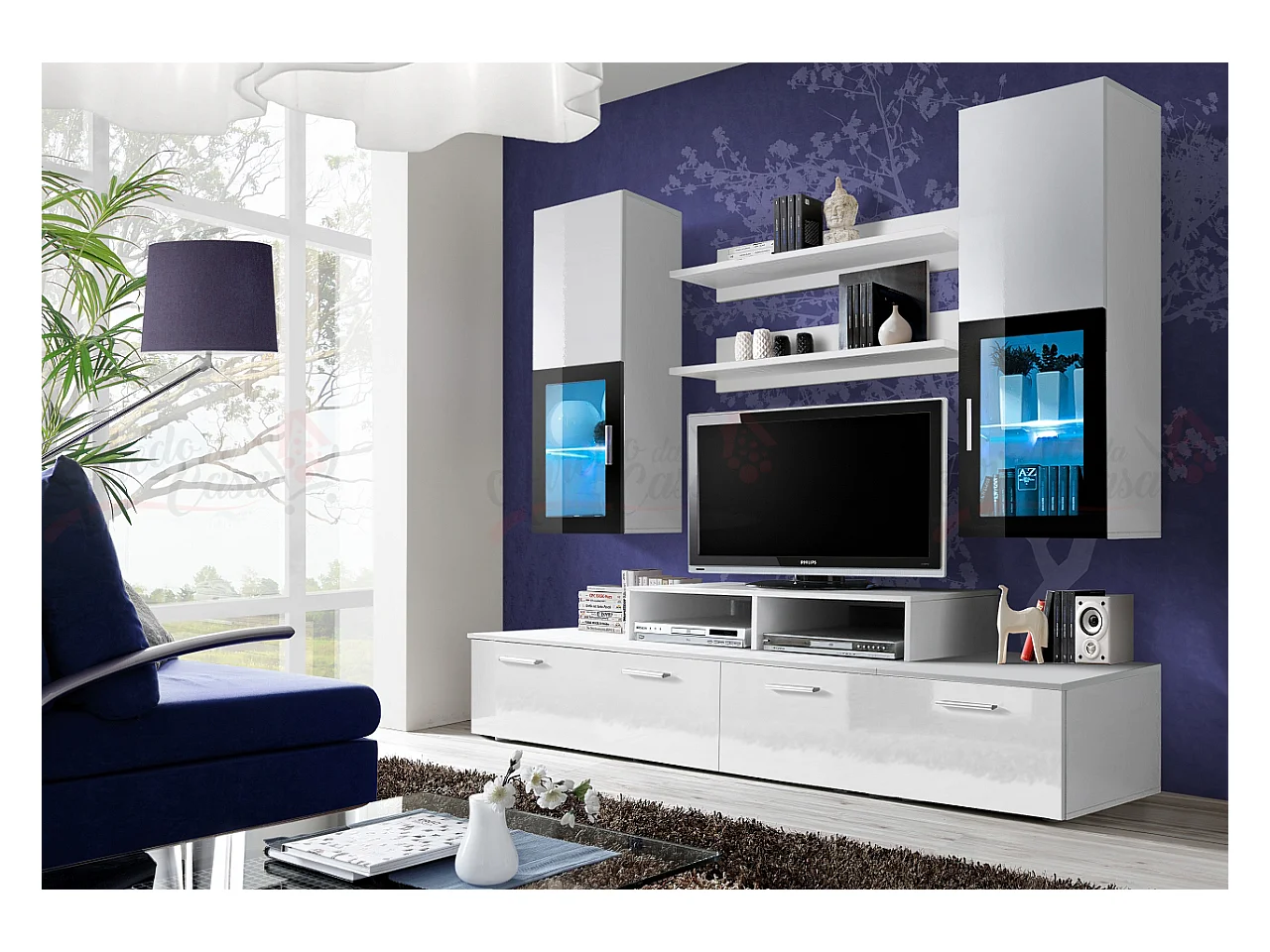 Parete attrezzata moderna da soggiorno completa 260x190 bianco PAP84