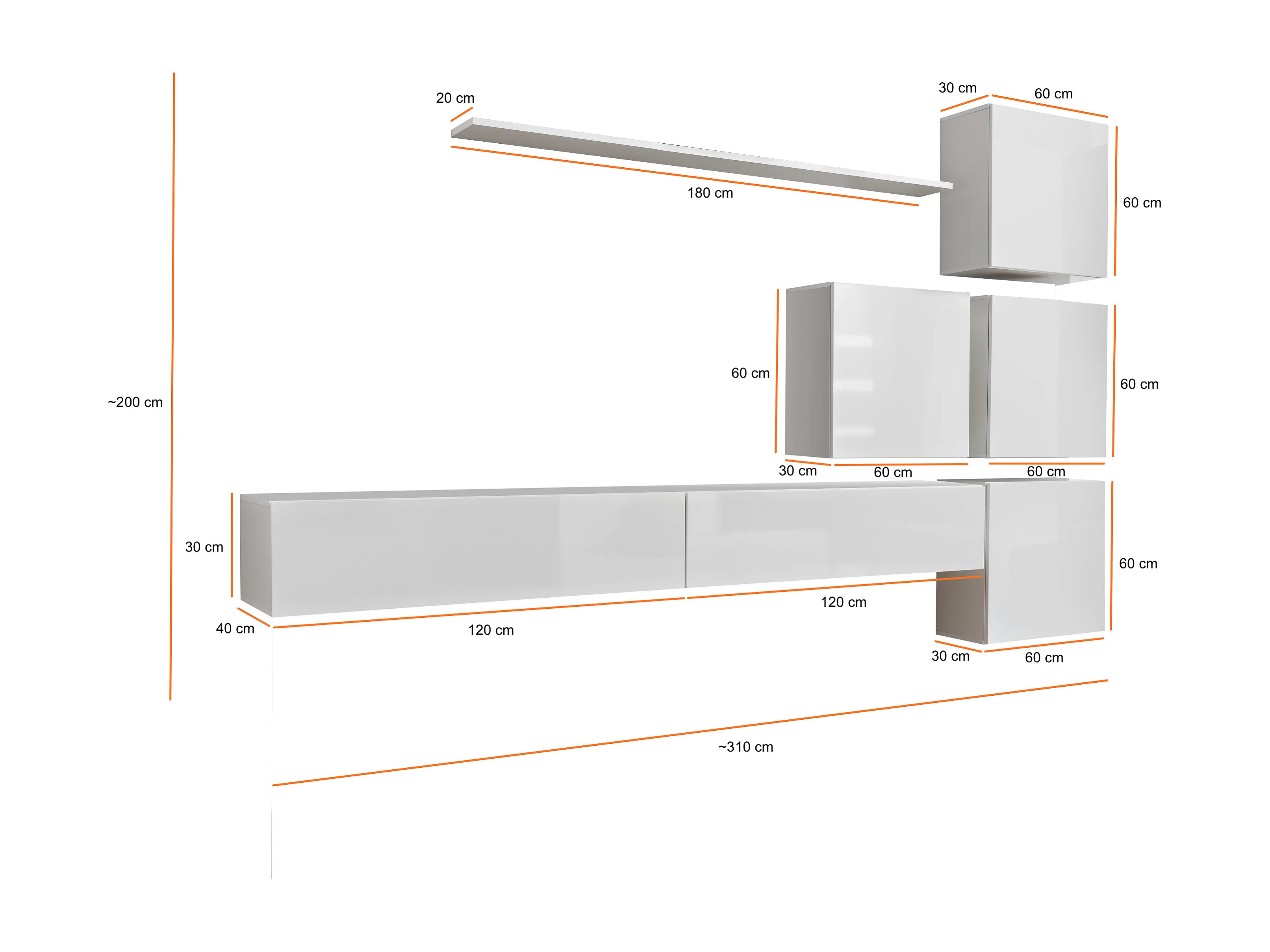 Parete attrezzata per soggiorno design moderno PAP53 310x200 rovere e bianco