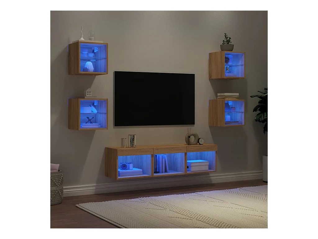 Parete attrezzata TV con LED 6 pezzi in legno ingegnerizzato rovere Sonoma