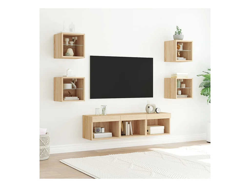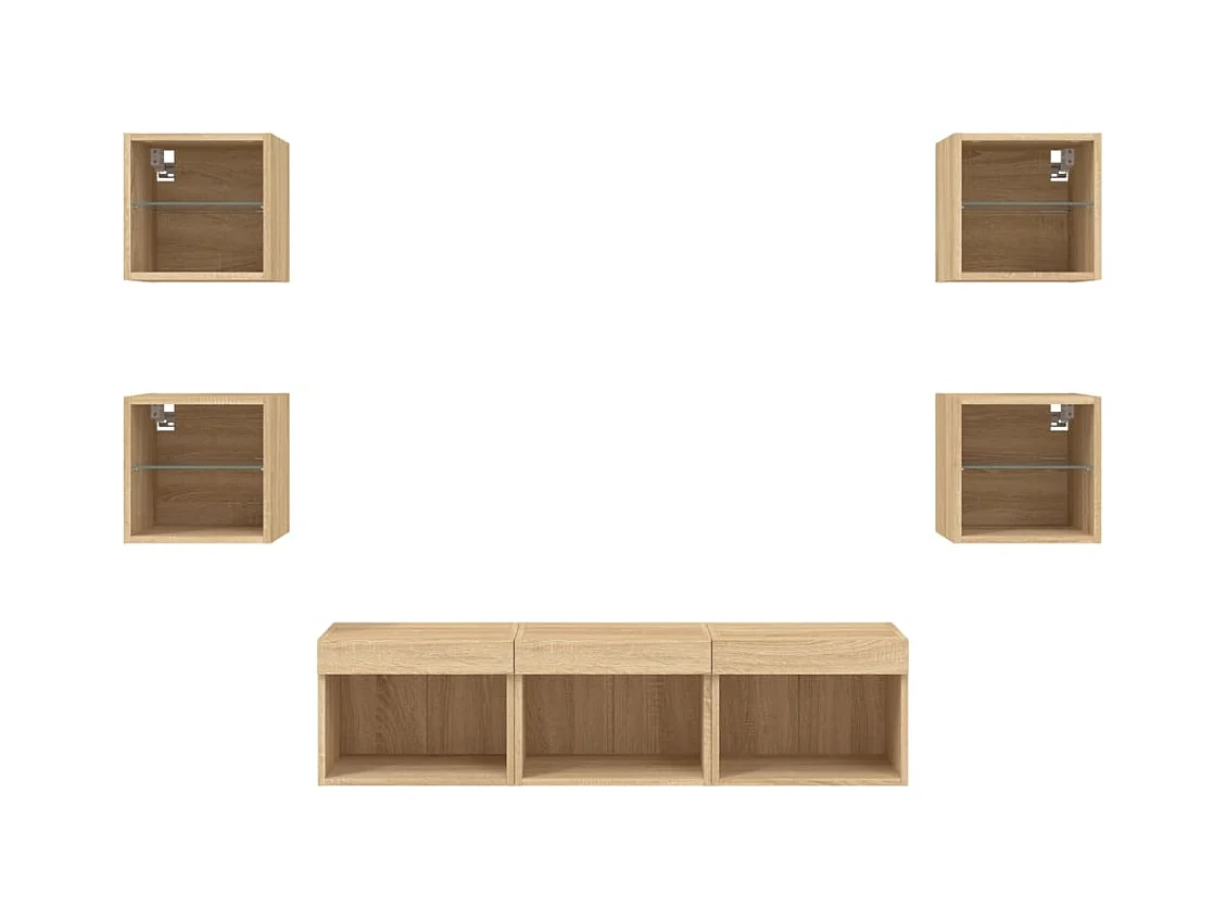 Parete attrezzata per TV LED da 7 pezzi in legno ingegnerizzato Sonoma Oak