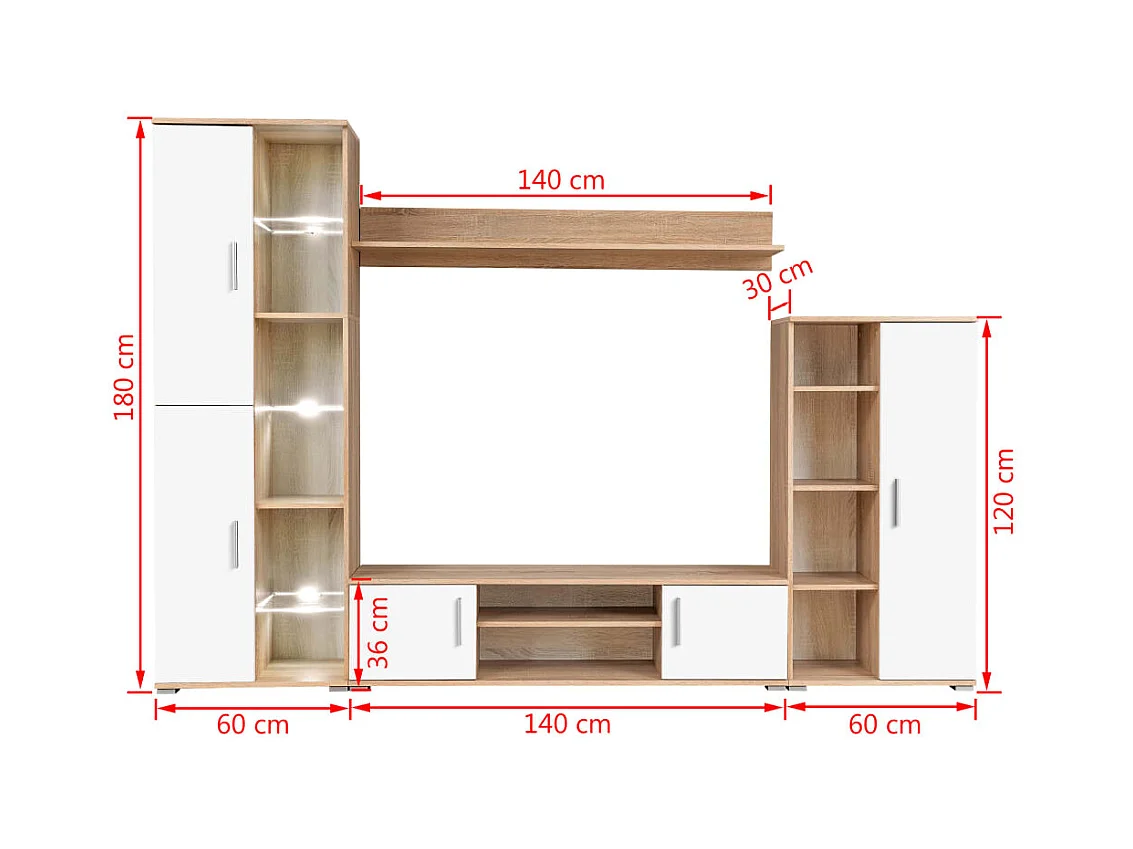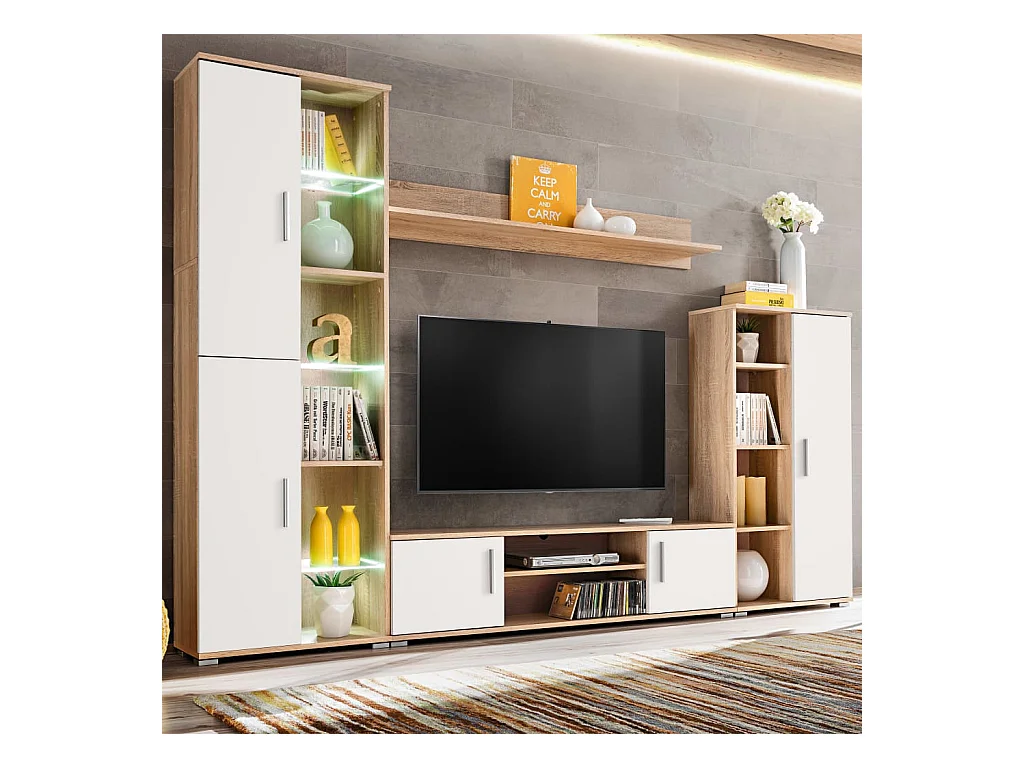 Parete Attrezzata Porta TV con Luci LED Rovere Sonoma e Bianco