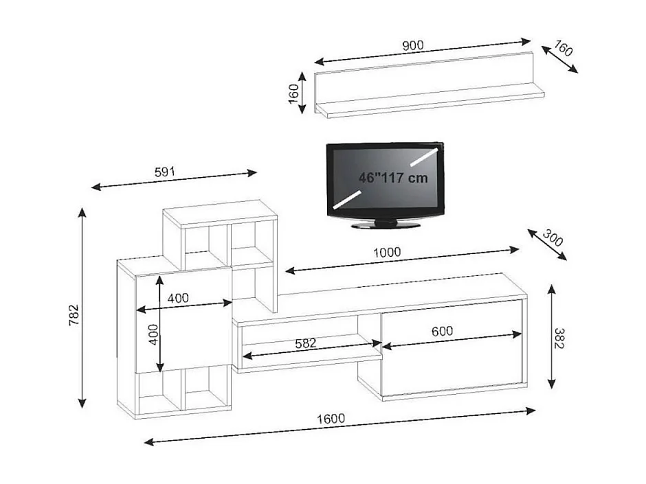 Parete attrezzata Rinaldo 160 colore bianco frontali noce