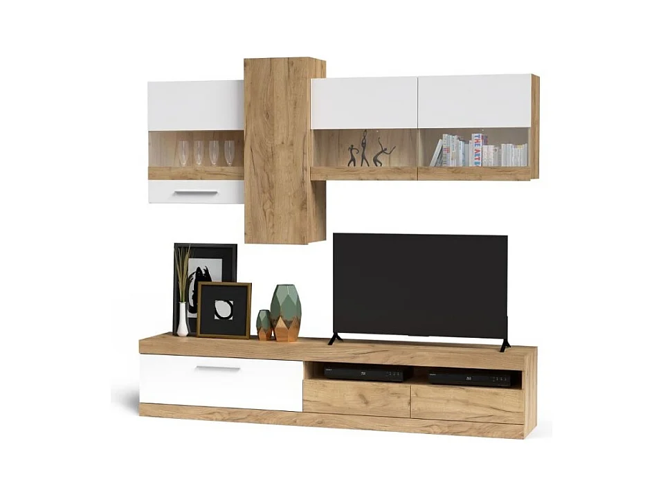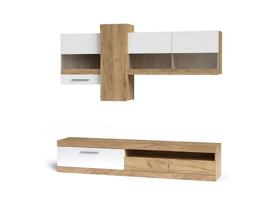 Parete attrezzata rovere e bianco Tokio 235x44,1x195h