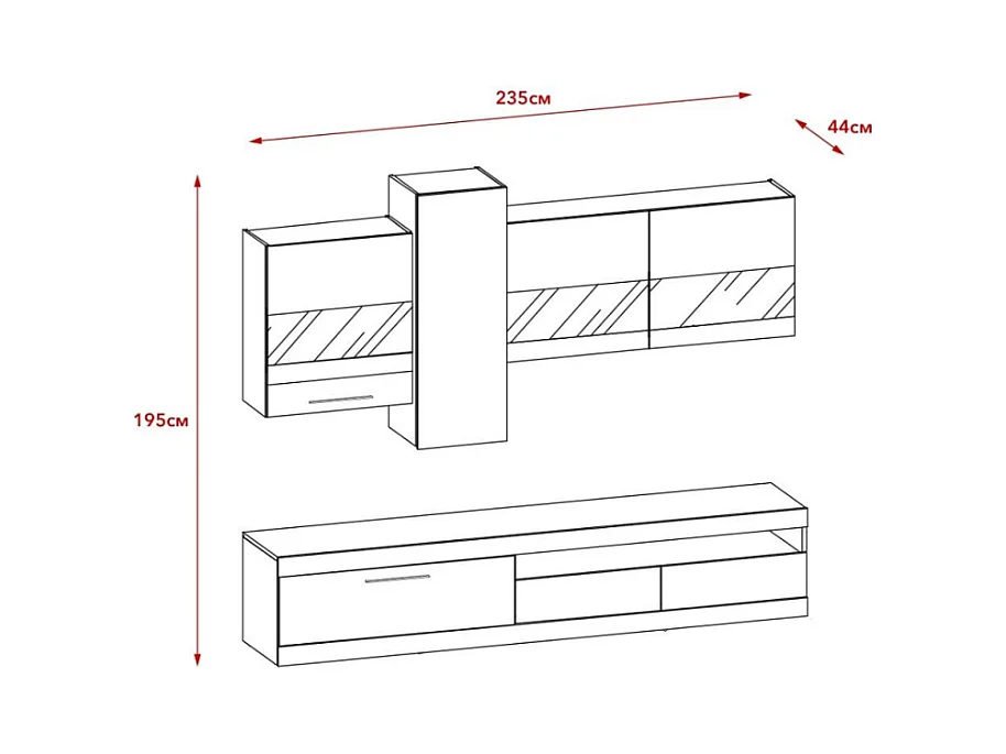 Parete attrezzata 301x44x195h Sabry colore titanio rovere Kadiz