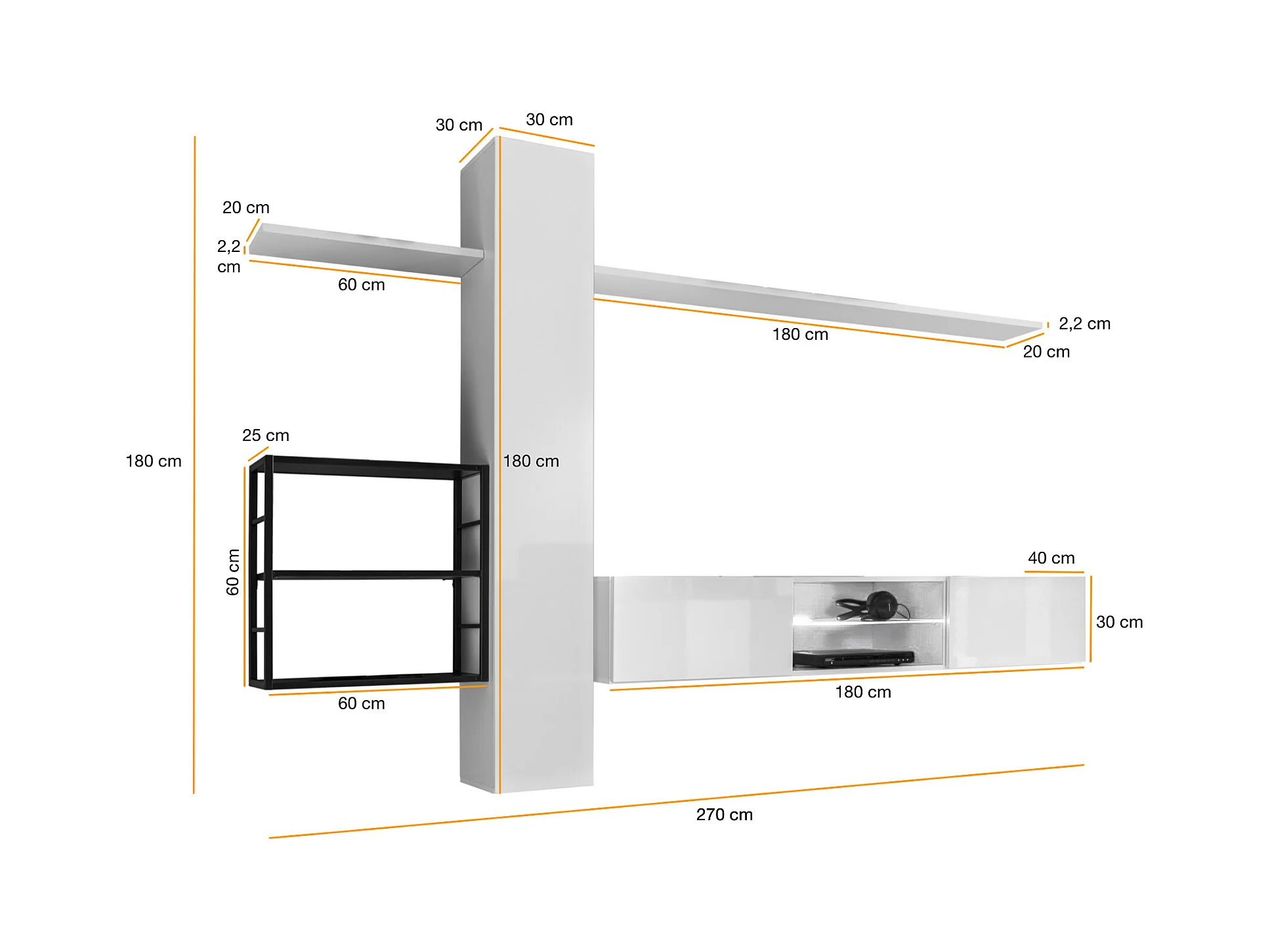 Parete attrezzata da soggiorno con luci LED 270x160 bianco e rovere PAP57