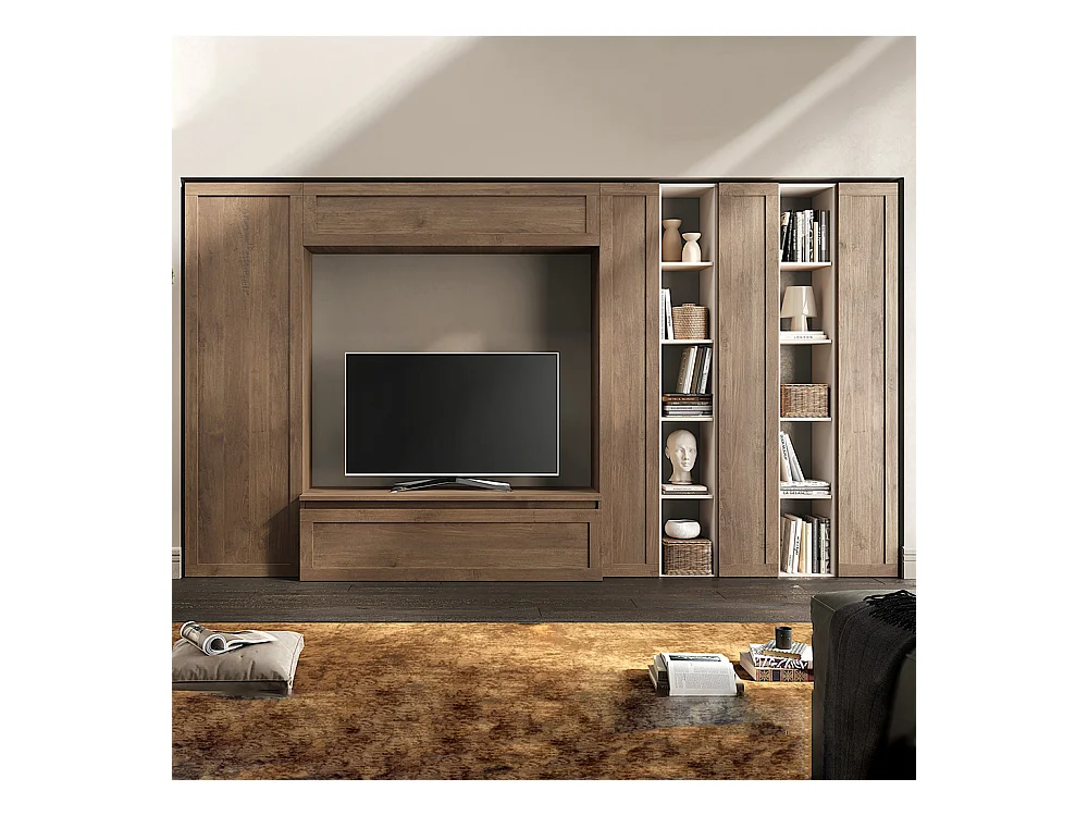 Parete attrezzata per salotto effetto legno PAI5 128x185 legno anticato