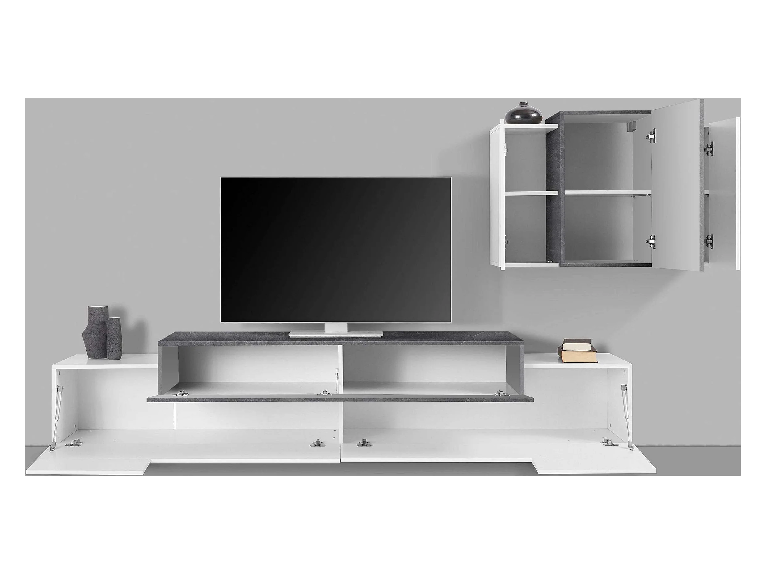 Parete attrezzata con porta TV pensile vetrina colonna bianco grigio Egypt Report