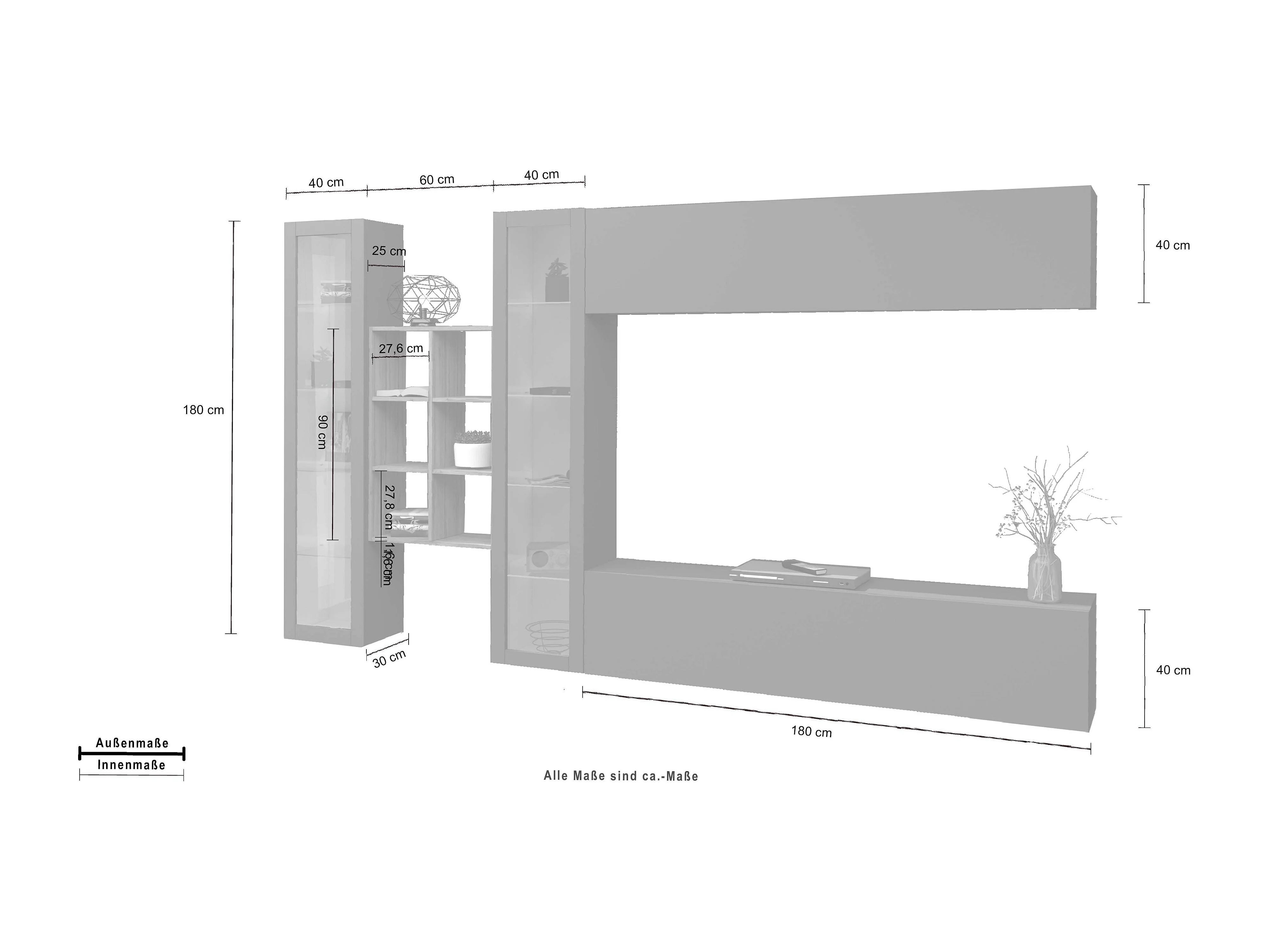 Parete attrezzata moderna grigia mobile TV 2 armadi pensile Note Wide