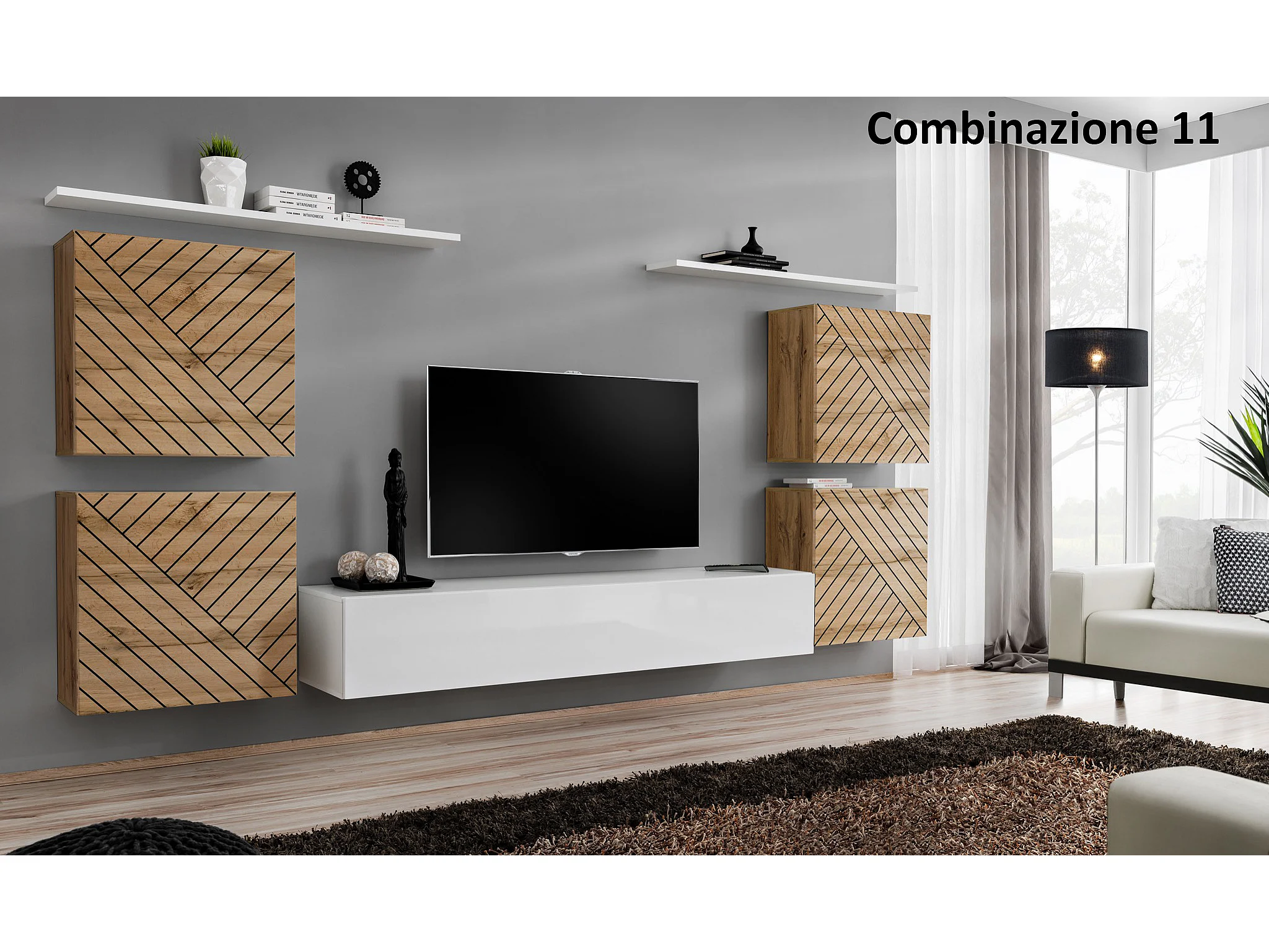 Parete attrezzata sospesa stile moderno PAP48 320x150 rovere e bianco