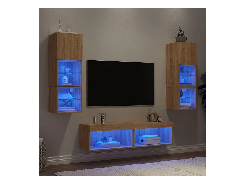Parete attrezzata TV con LED 6 pezzi in legno ingegnerizzato rovere Sonoma