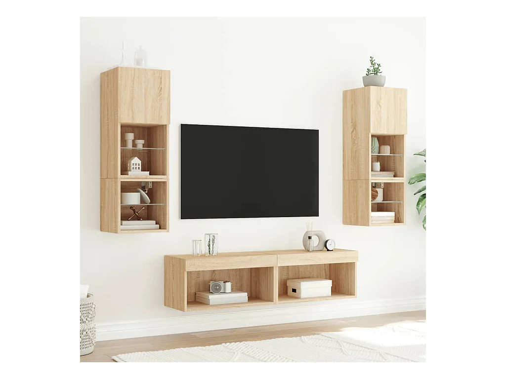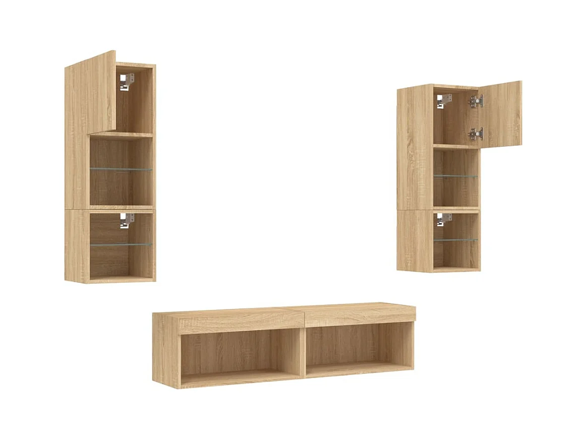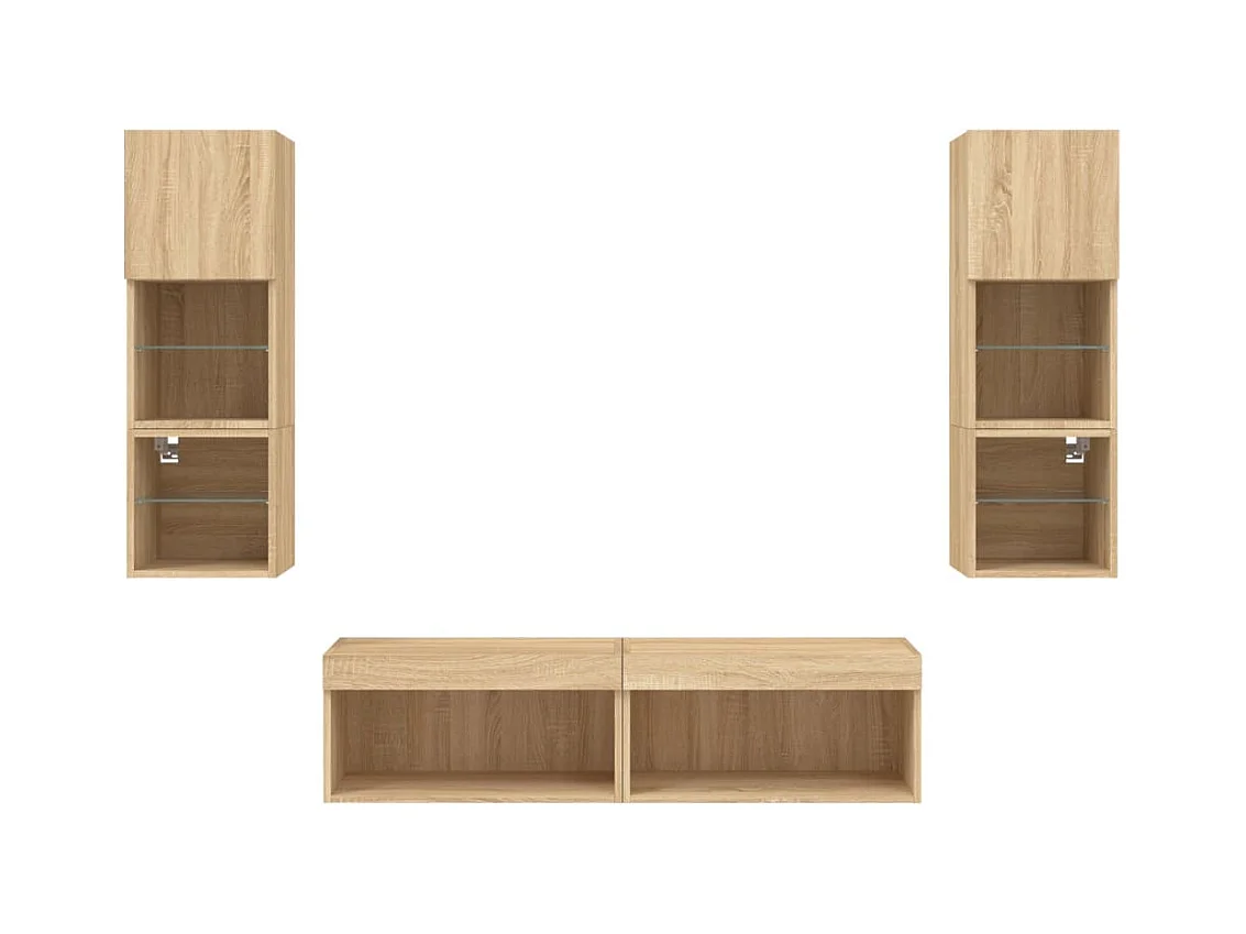 Parete attrezzata per TV LED da 7 pezzi in legno ingegnerizzato Sonoma Oak