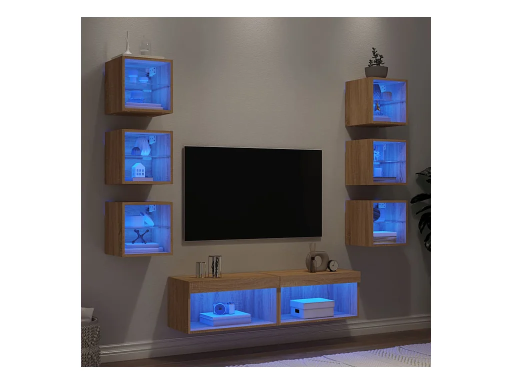 Parete attrezzata TV con LED 8 pezzi in legno ingegnerizzato rovere Sonoma