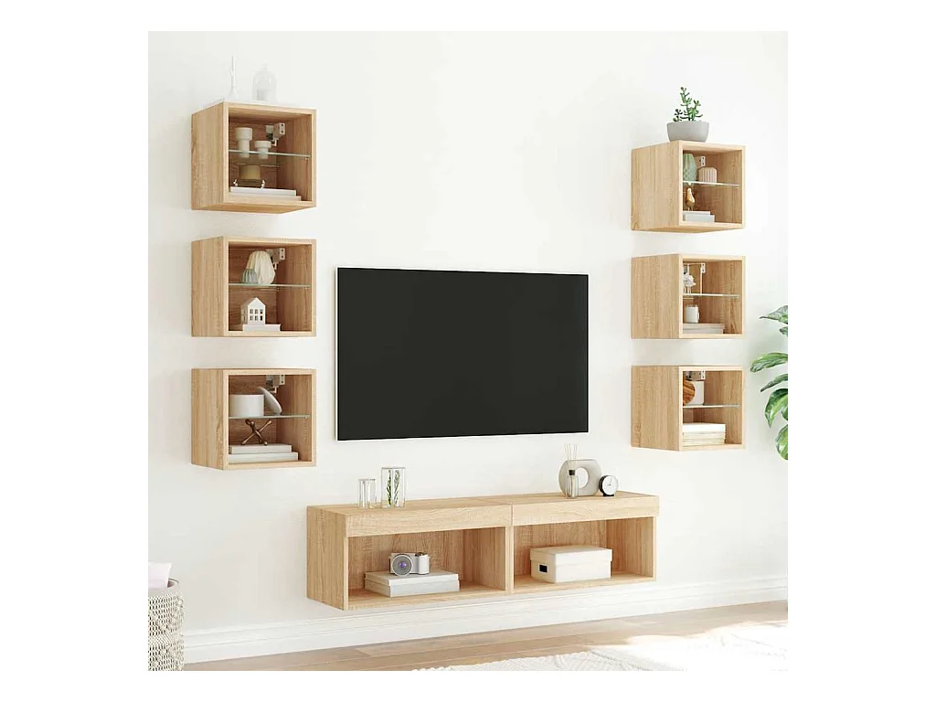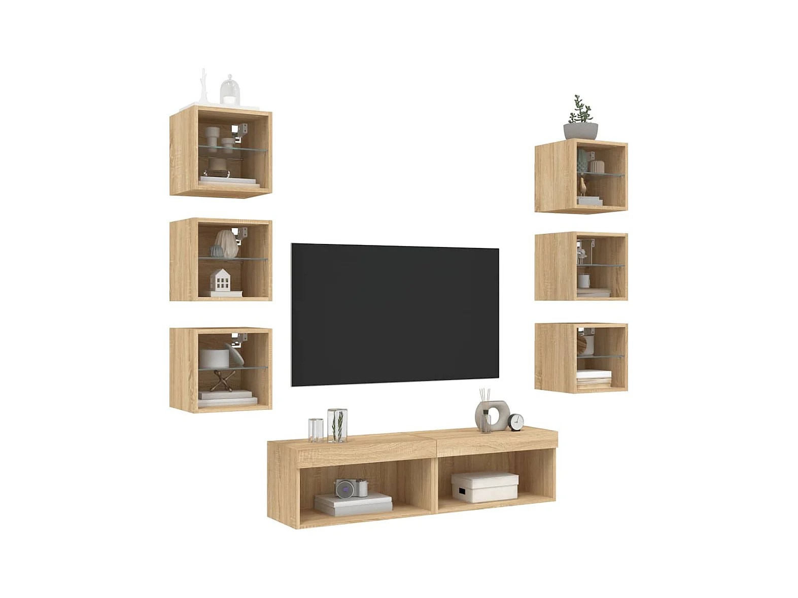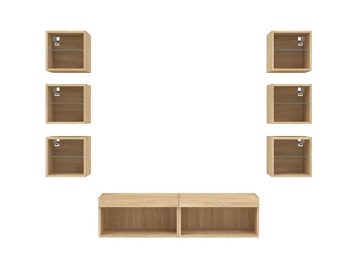 Parete attrezzata per TV LED da 7 pezzi in legno ingegnerizzato Sonoma Oak