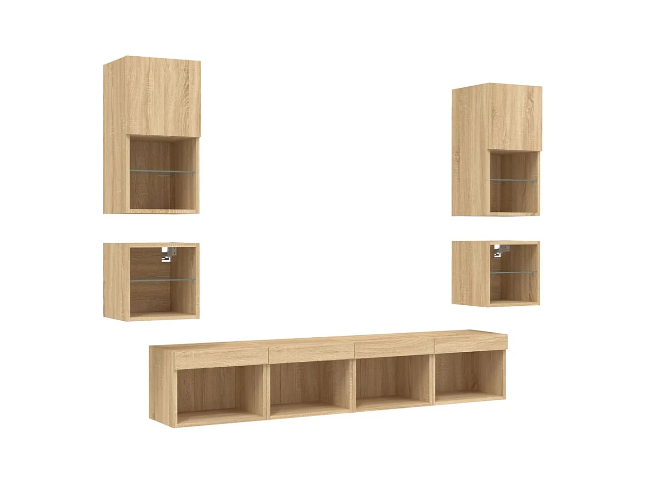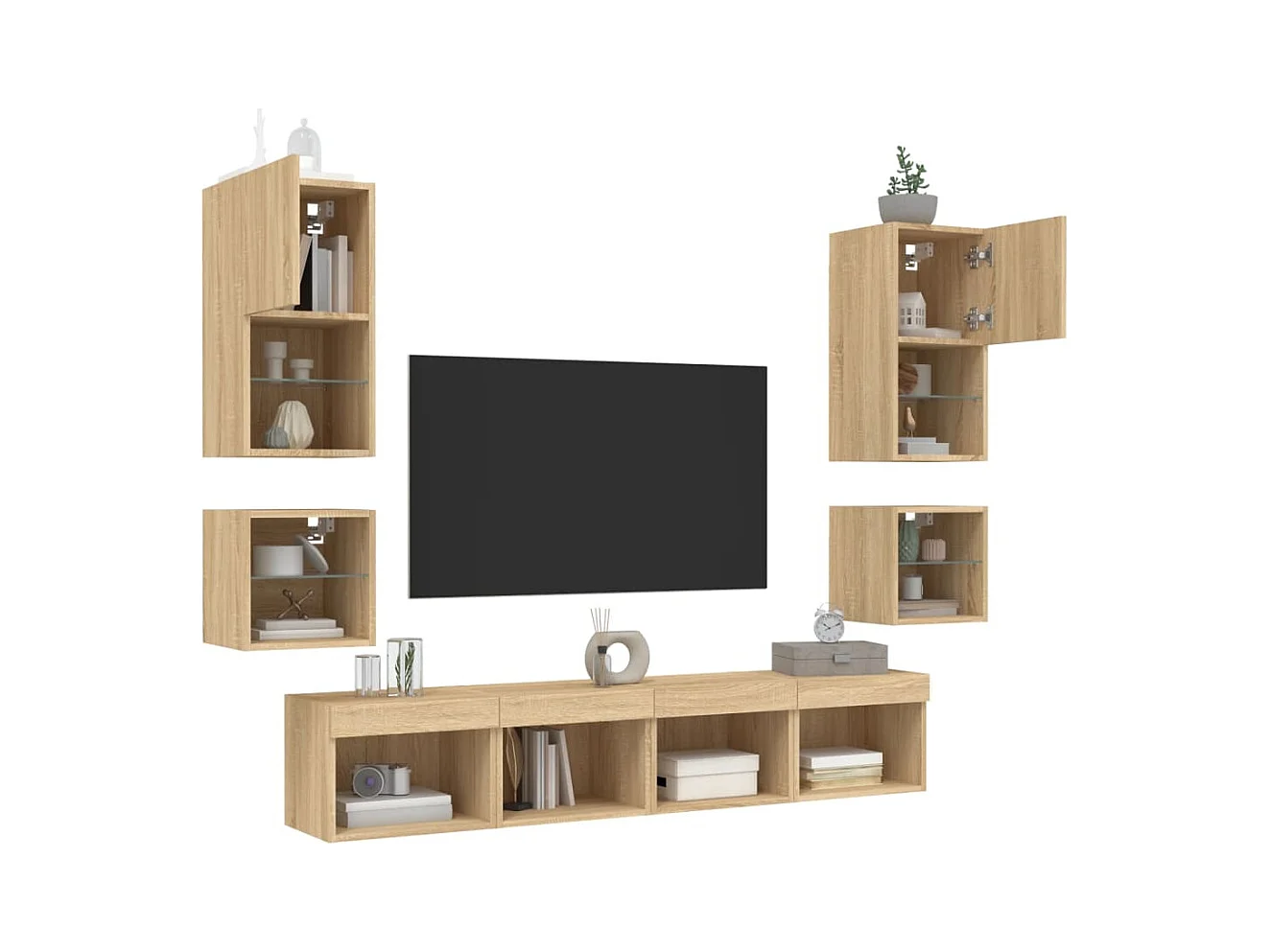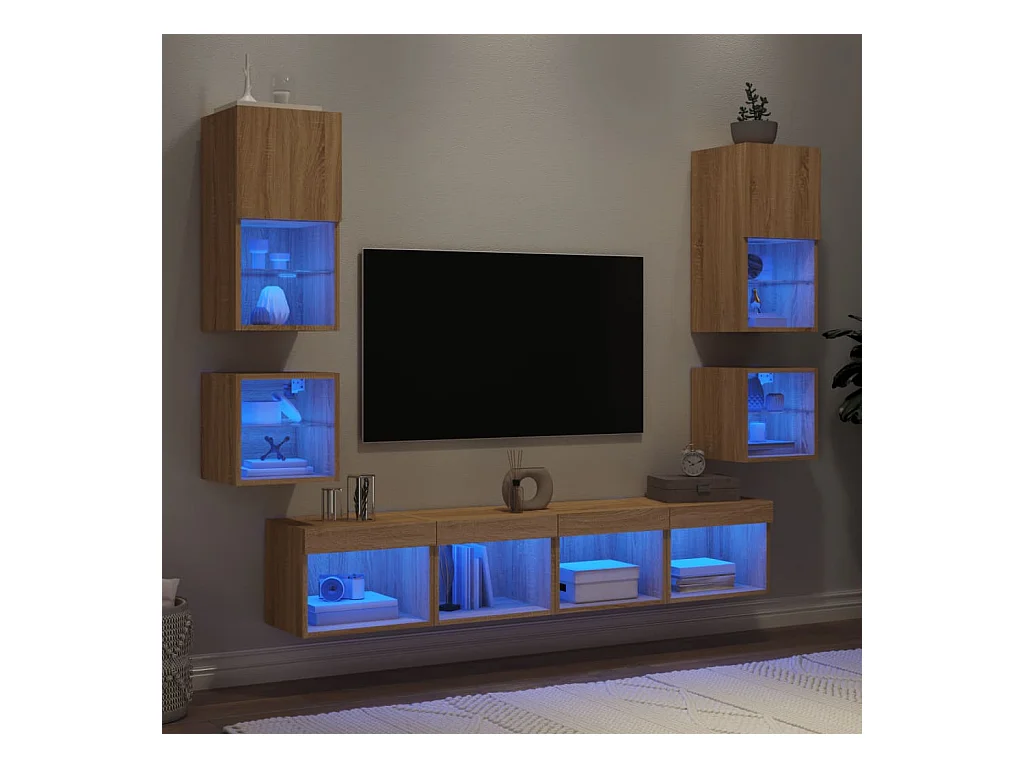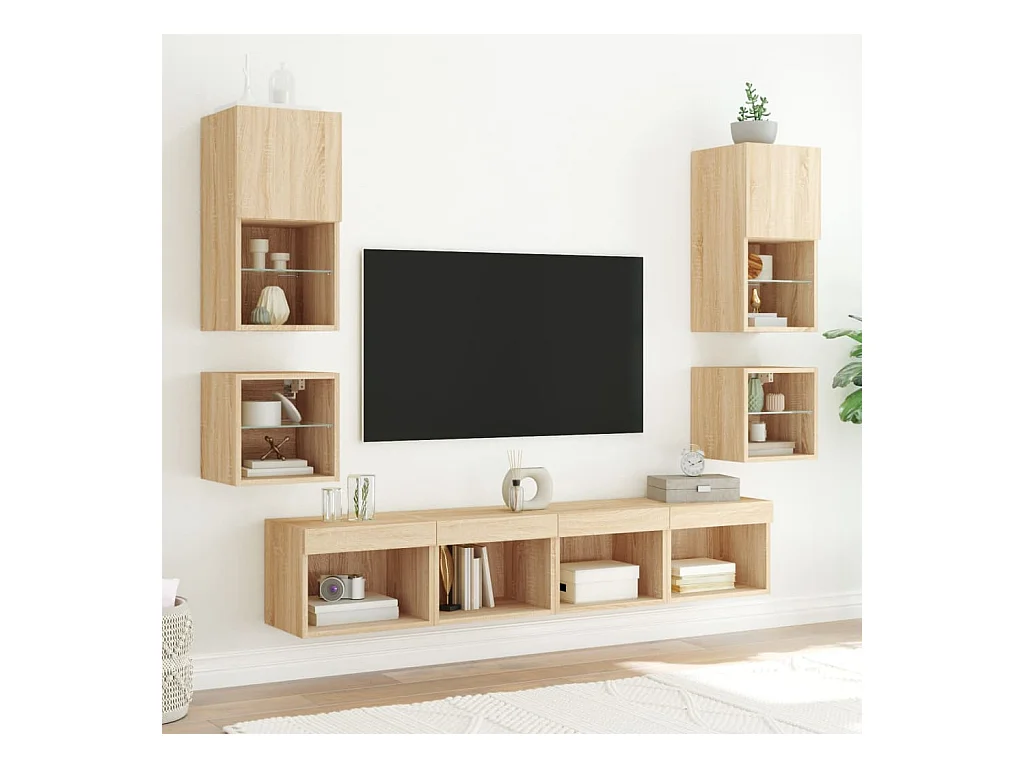 Parete attrezzata per TV LED da 7 pezzi in legno ingegnerizzato Sonoma Oak