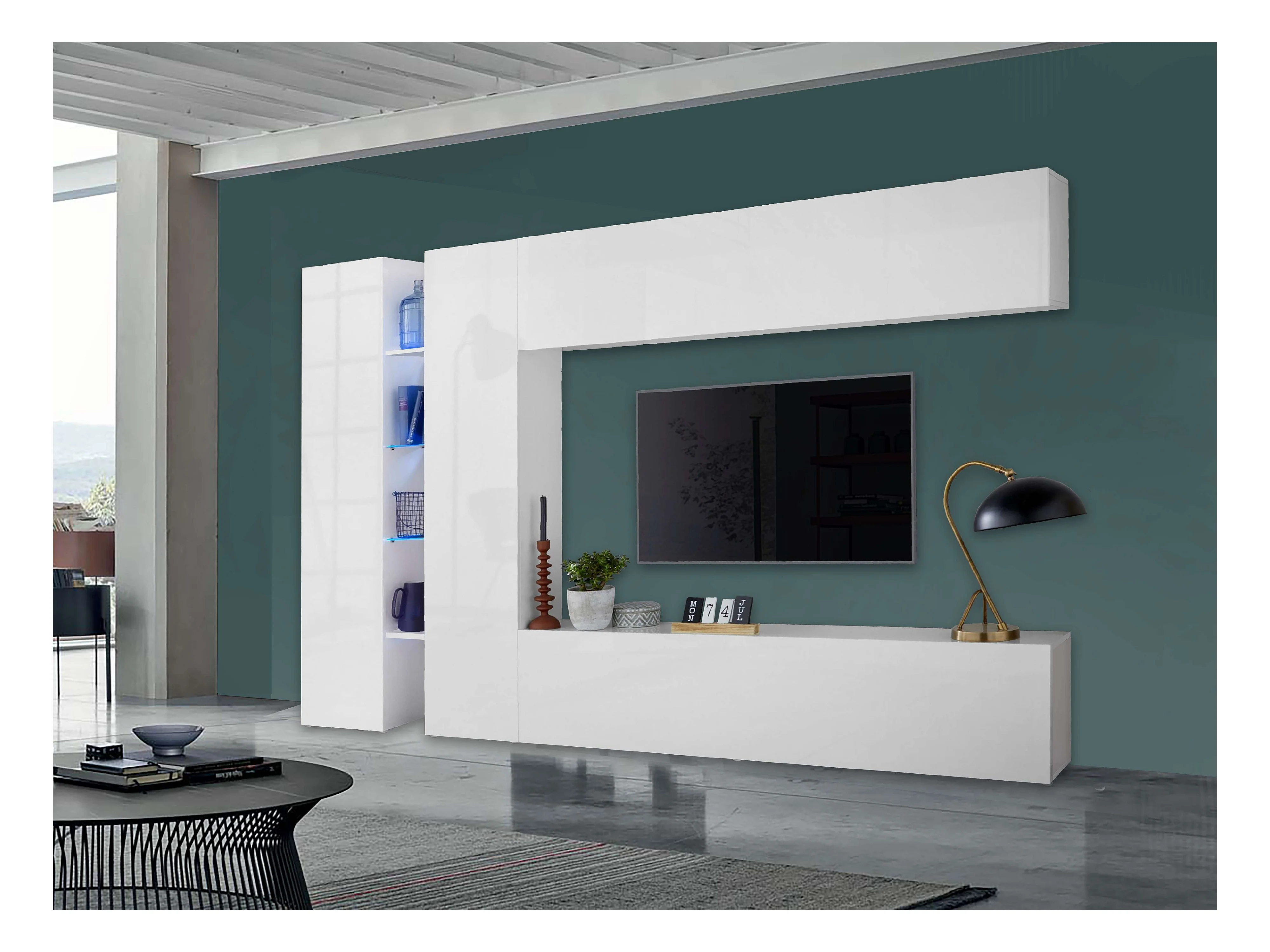 Parete attrezzata bianco lucido porta TV colonna vetrina pensile Joy Ledge