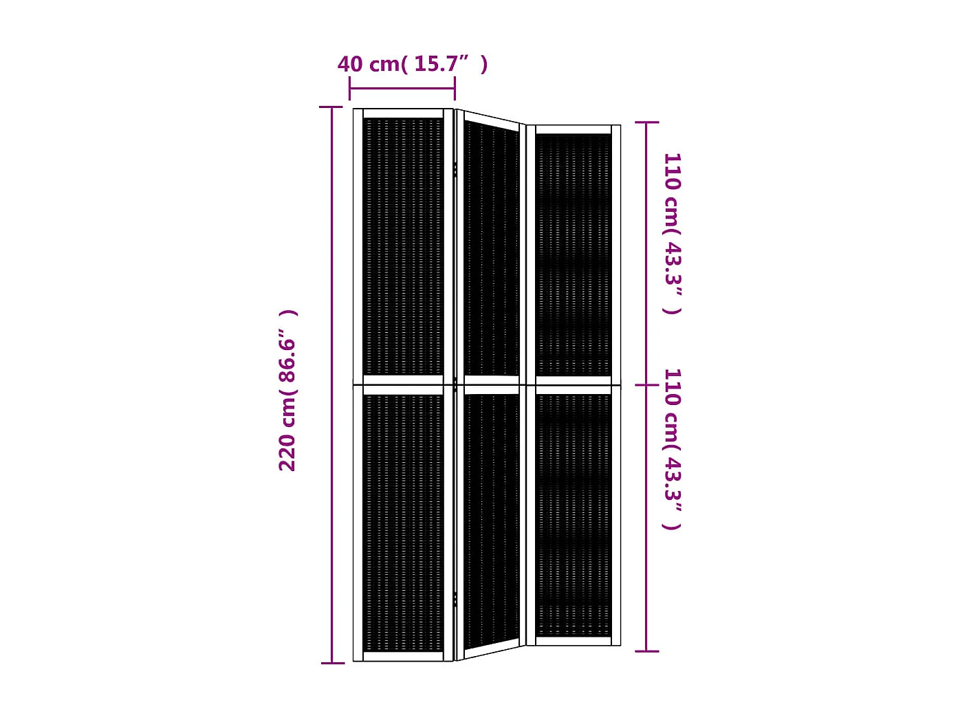 Parete divisoria 3 pannelli marroni in legno massello di paulownia