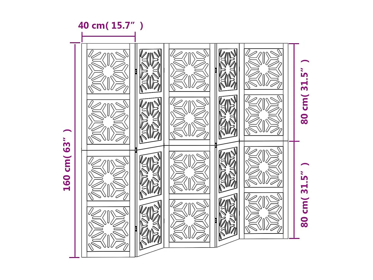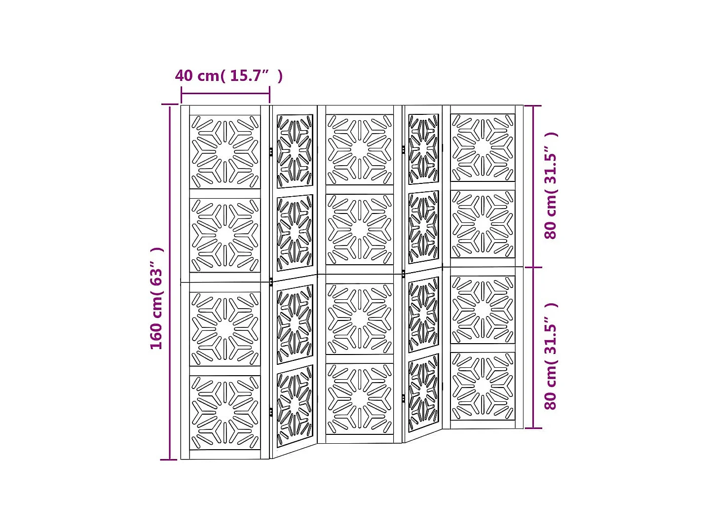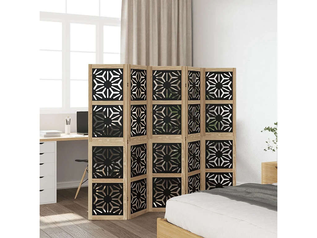Parete divisoria 5 pannelli in paulownia massiccia marrone nero