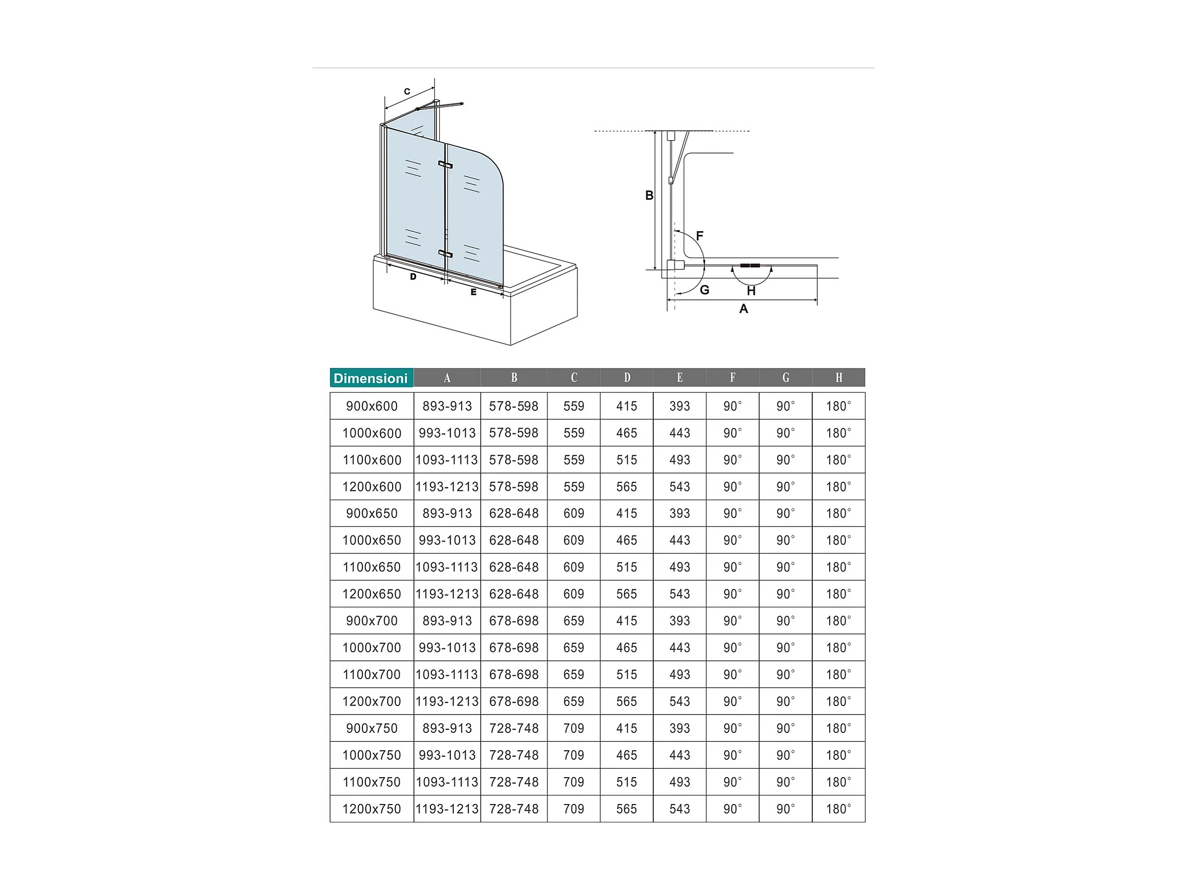 Parete Doccia 110x140cm Sopravasca Angolare 2 Ante Pieghevoli con Parete Laterale 65cm Vetro Temperato 6 mm Trasparente Anticalcare Nero Opaco