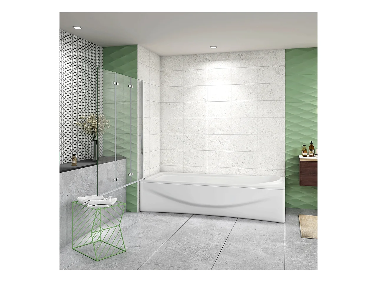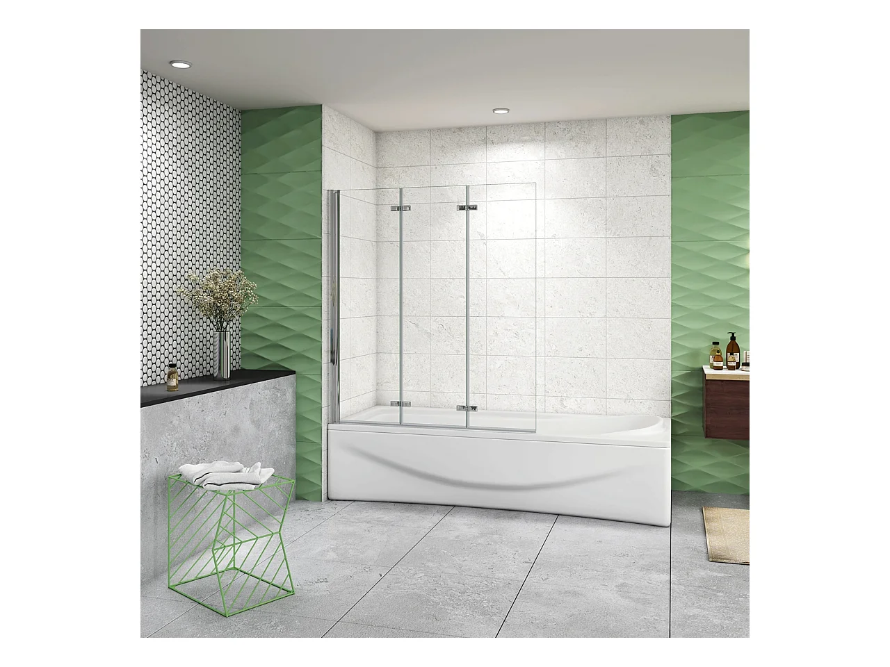 H.140 cm Parete Doccia Per Vasca con Lato Fisso 130x75 cm 3 Ante Pieghevoli a Libro Vetro Temperato 6 mm Trasparente Anticalcare Telaio Cromo Lucido