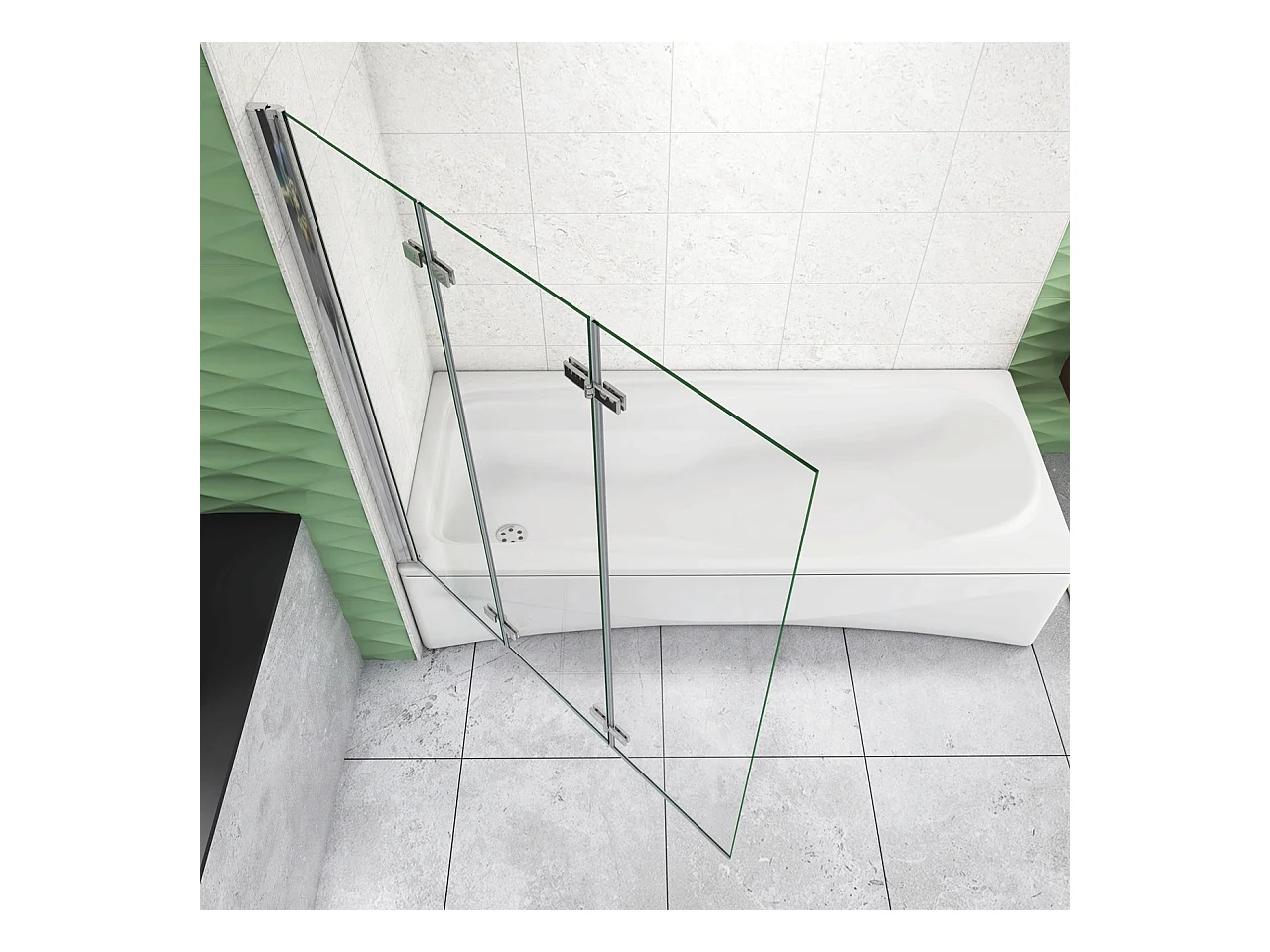 130x140cm Parete Per Vasca Doccia Tre Ante Movibili Pieghevoli a Libro Vetro Temperato 6 mm Anticalcare Telaio Cromato Lucido