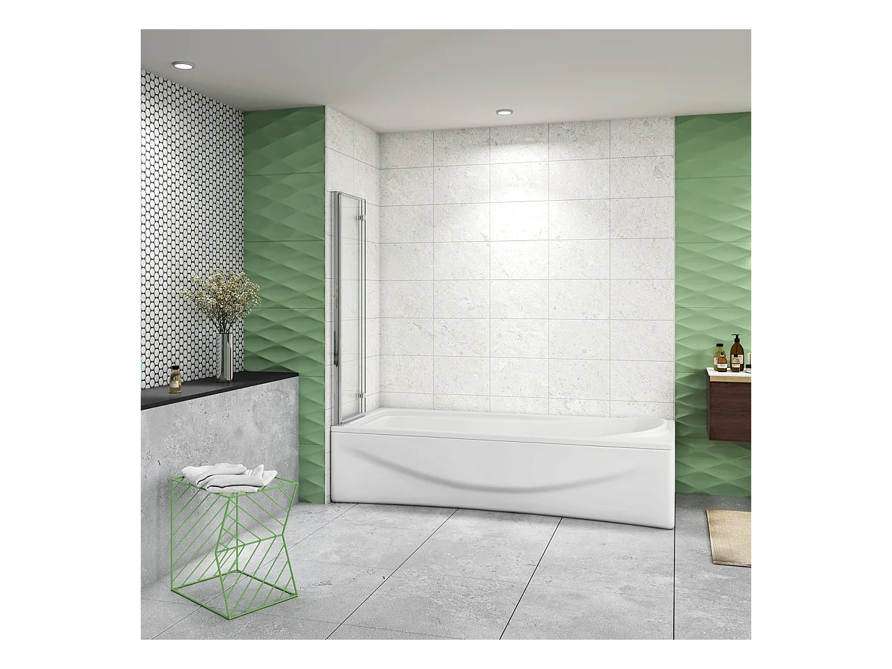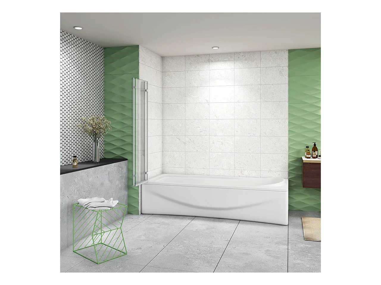 H.140 cm Sopravasca Parete Vasca da Bagno 120 cm Due Ante Movibili con Maniglia Portasciugamani Vetro 6 mm Temperato Anticalcare