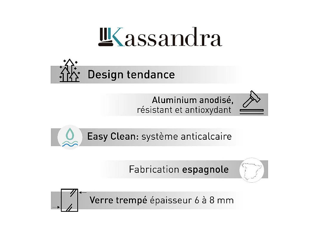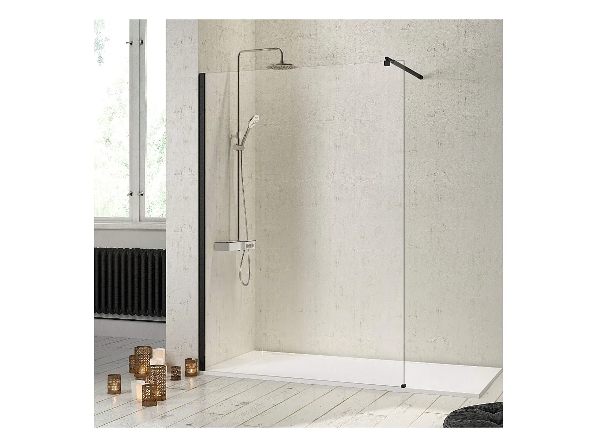 Parete doccia fissa FRESH con profilo NERO OPACO 110 cm