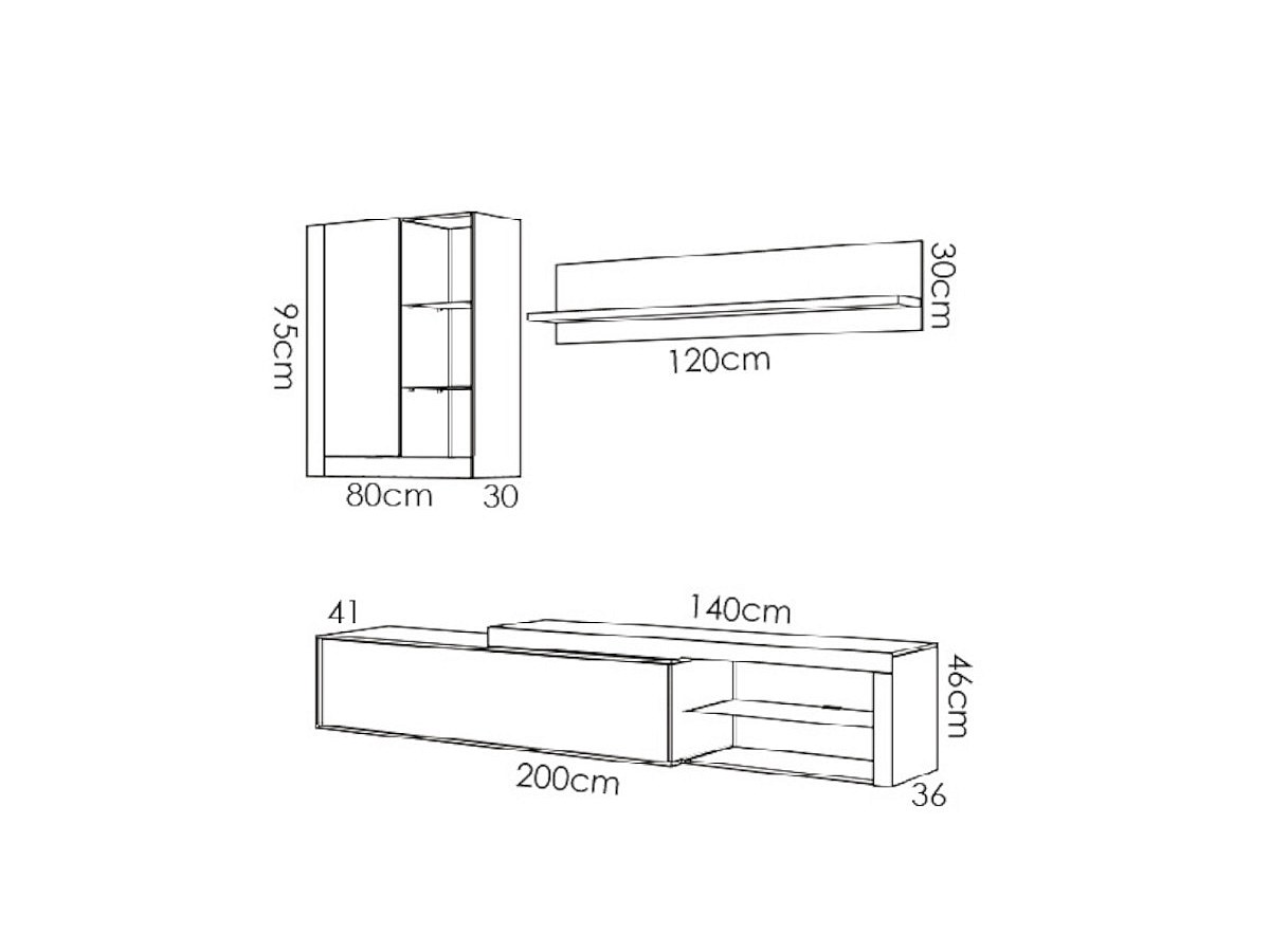 - Dimensioni del mobile TV: L200xP41xH46 cm