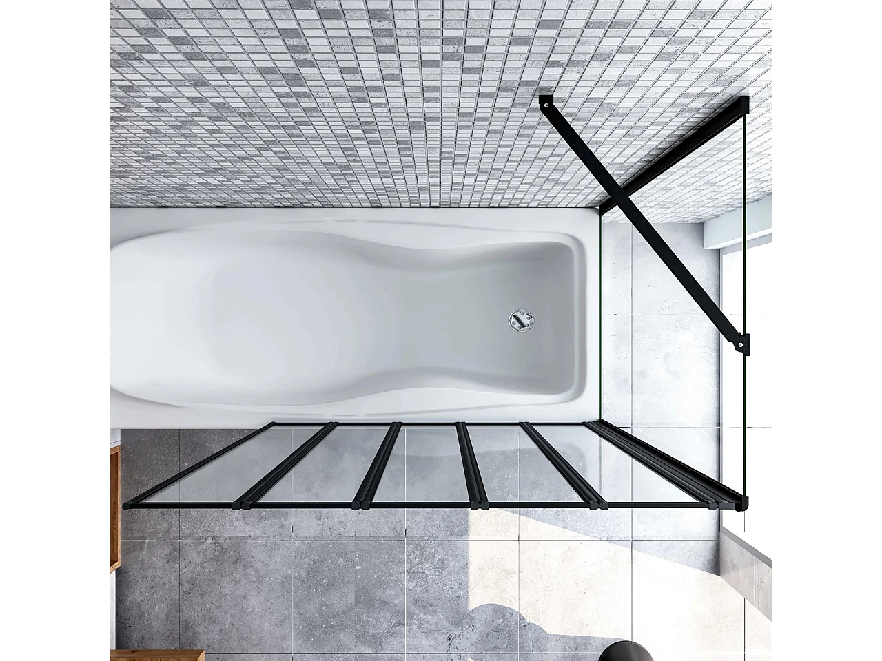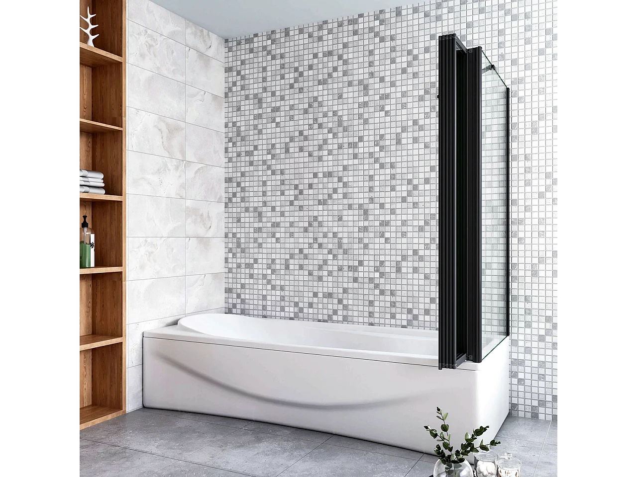 Parete Doccia Per Vasca con Lato Fisso 130x75 cm H.140 cm 3 Ante Pieghevoli a Libro in Vetro Temperato 6 mm Trasparente Anticalcare Telaio Nero Opaco
