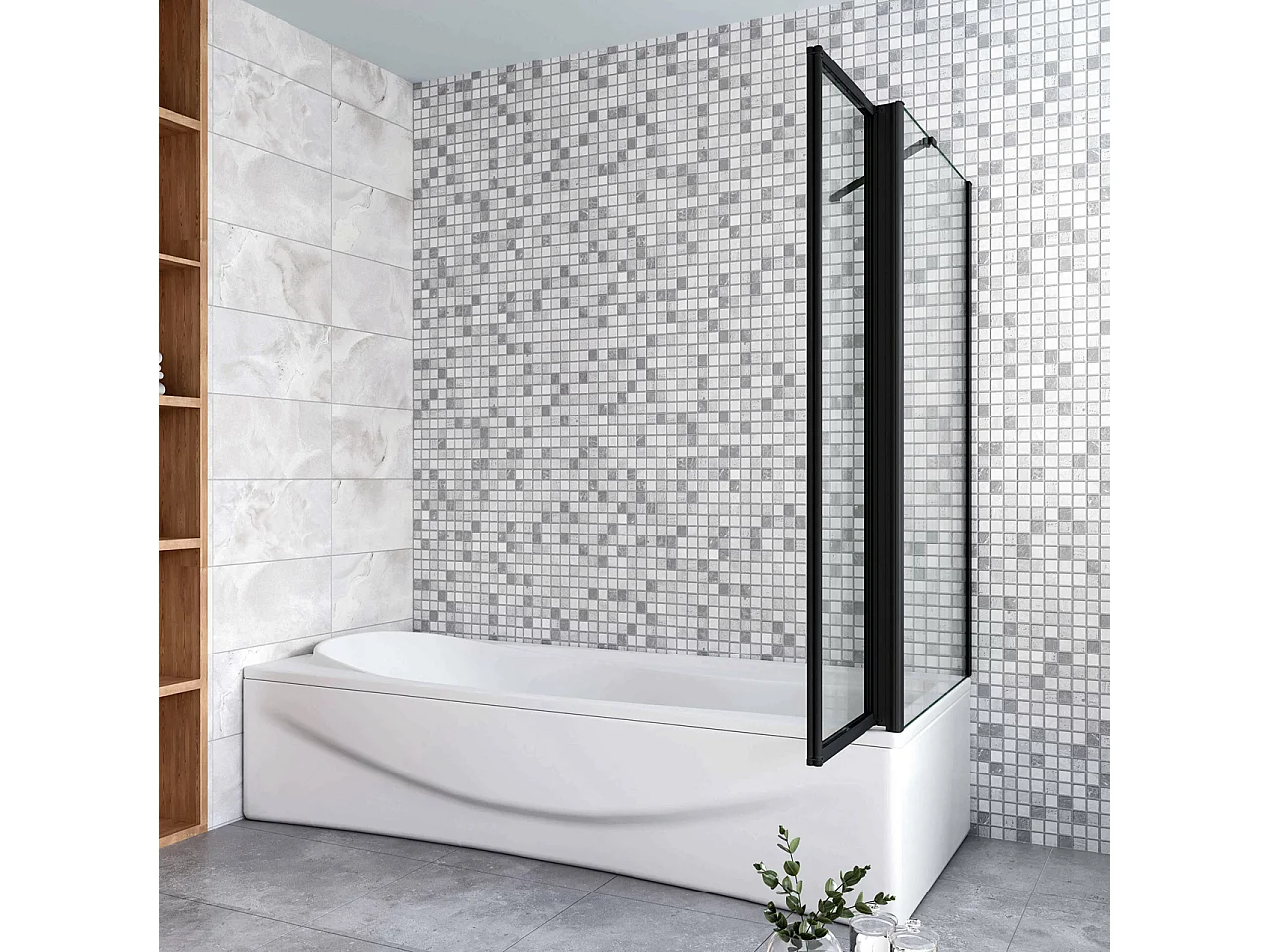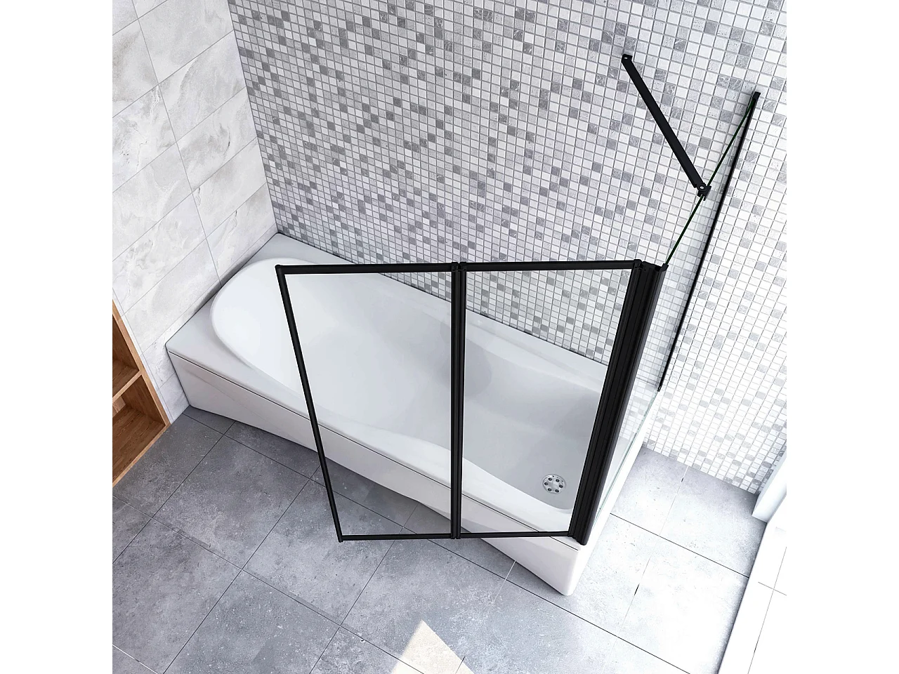 Sopravasca 90x140 cm Parete Doccia per Vasca 2 Antine Pieghevoli a Libro Vetro Temperato Trasparente Da 4 mm Profilo Nero Opaco
