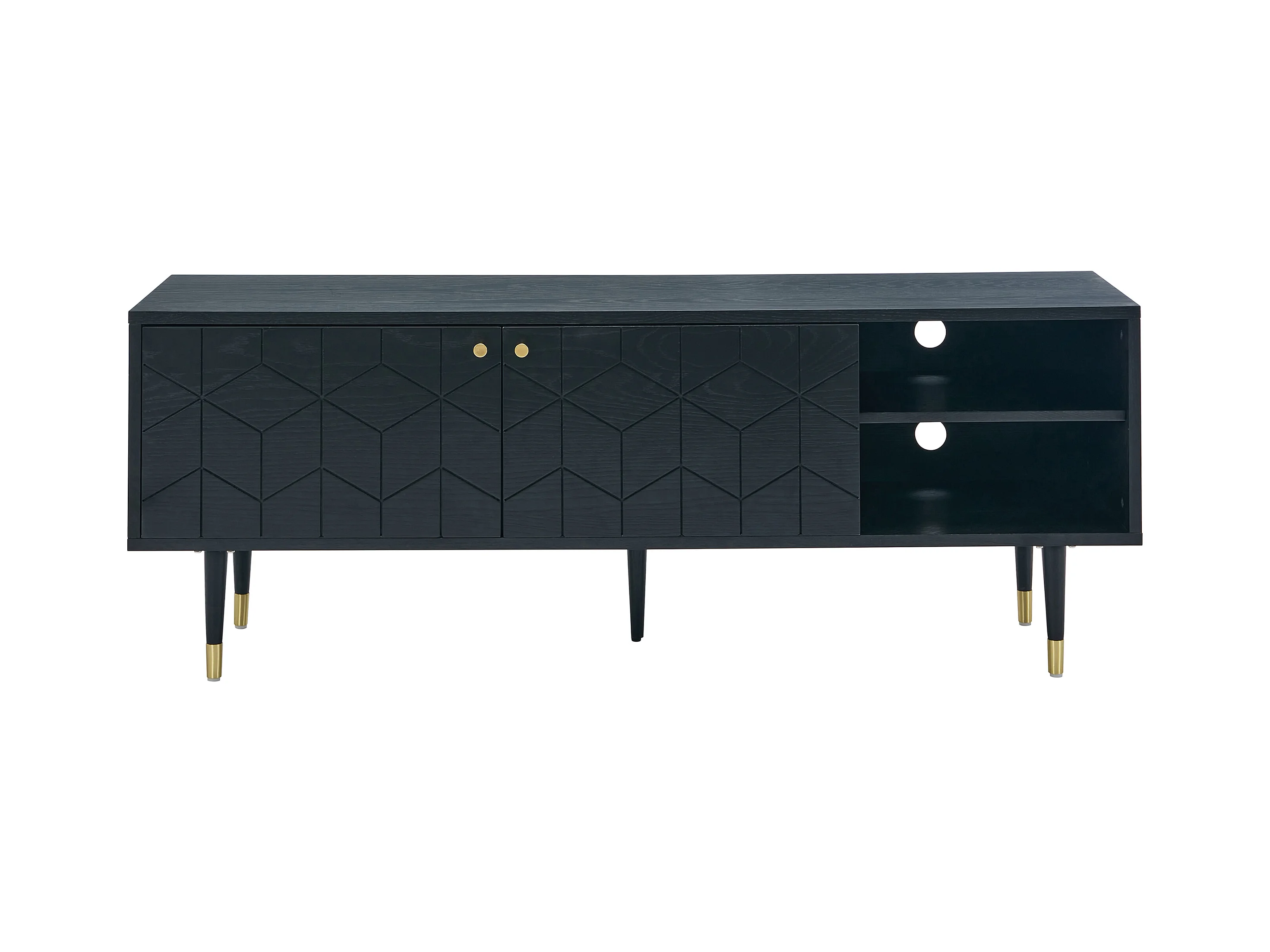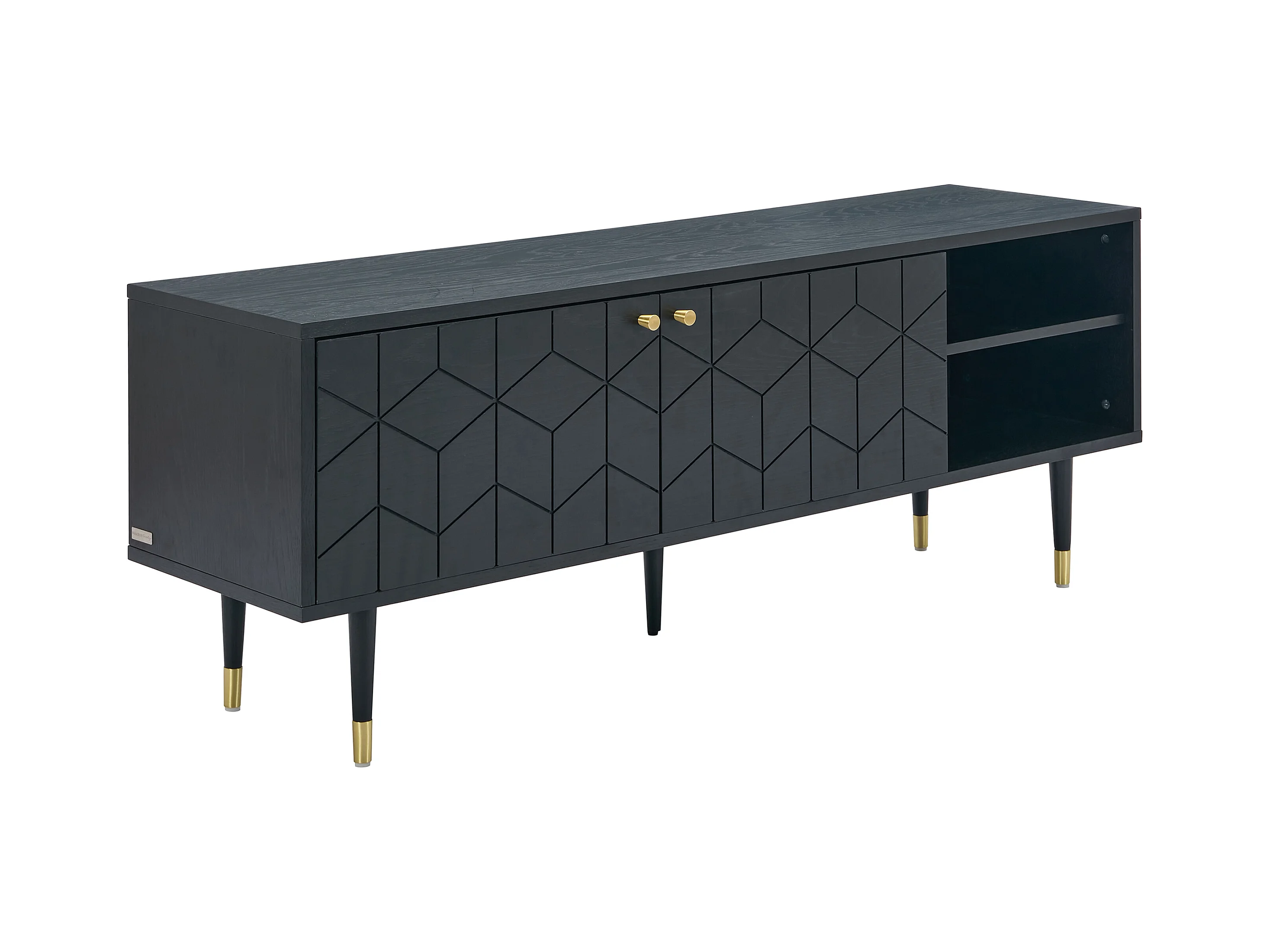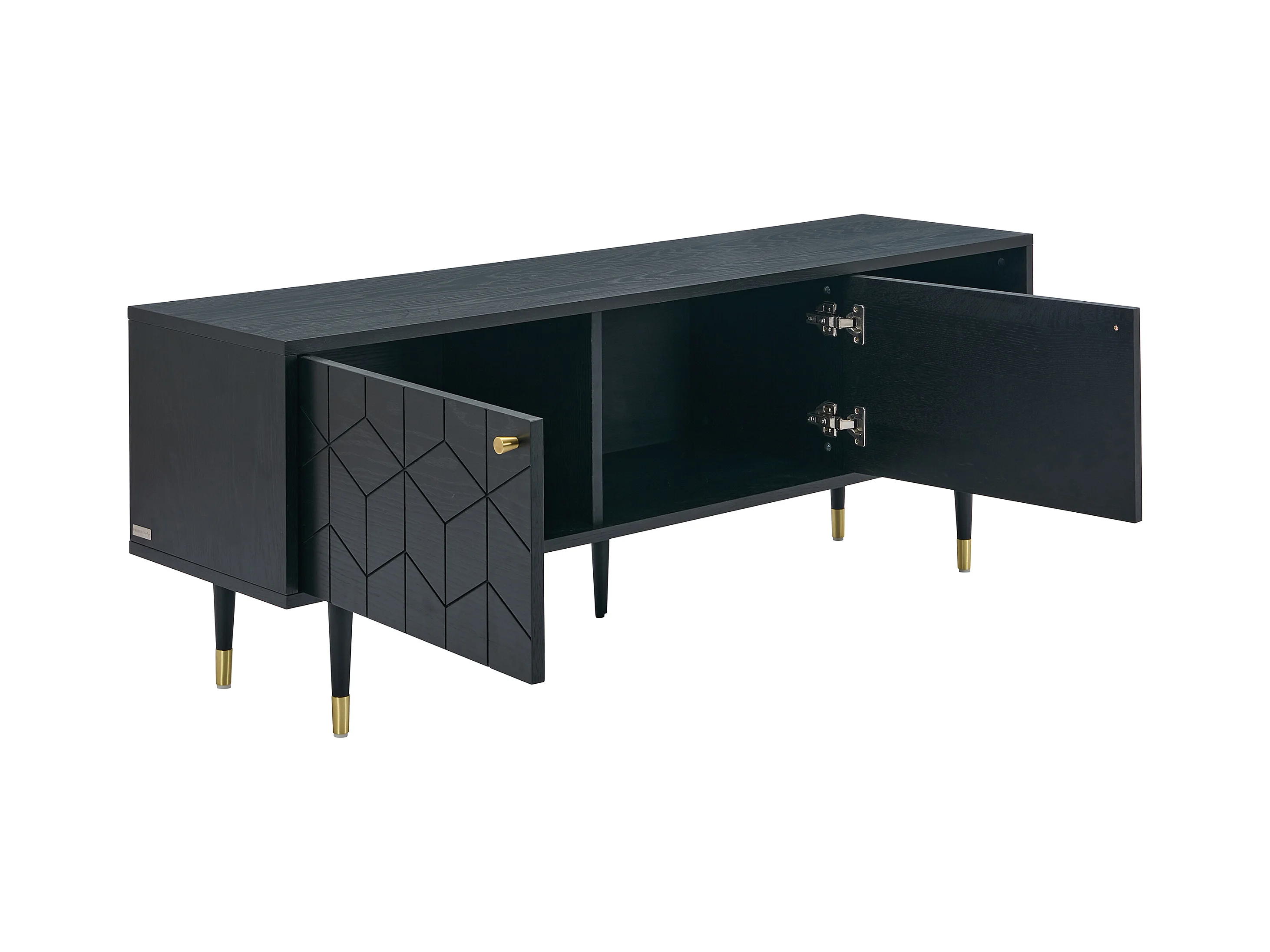 Mobile TV con 2 ante e 2 nicchie placcatura rovere Nero e Dorato - PARIOMA