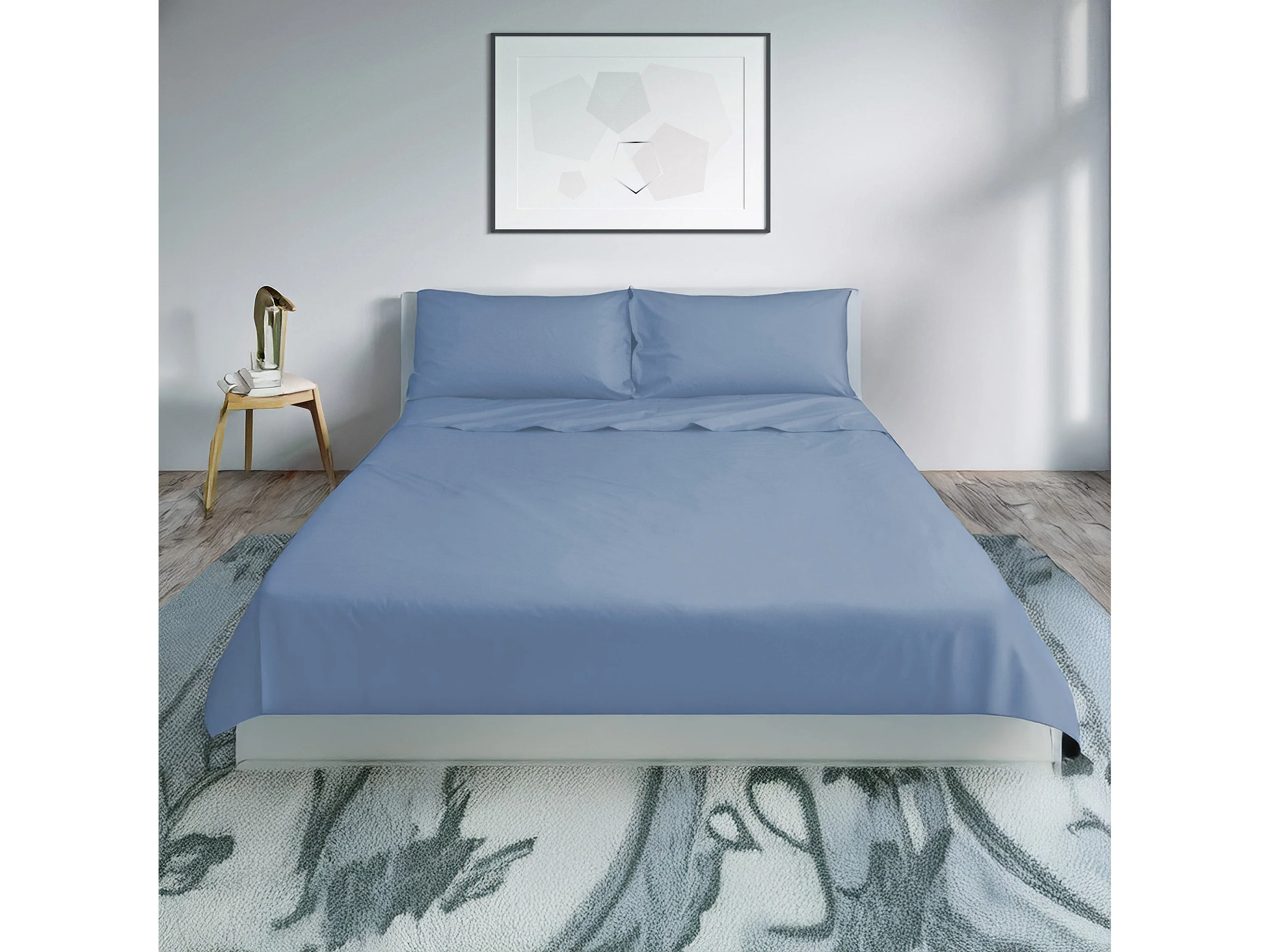 Parure lenzuolo in percalle di cotone azzurro (220x290cm)