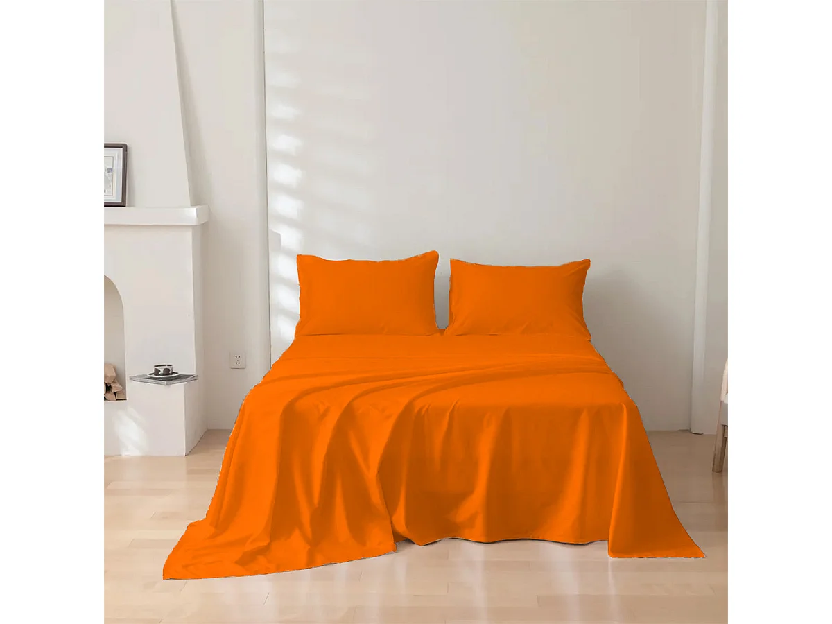 Parure lenzuolo in puro cotone tinta unita arancione (200x290cm)