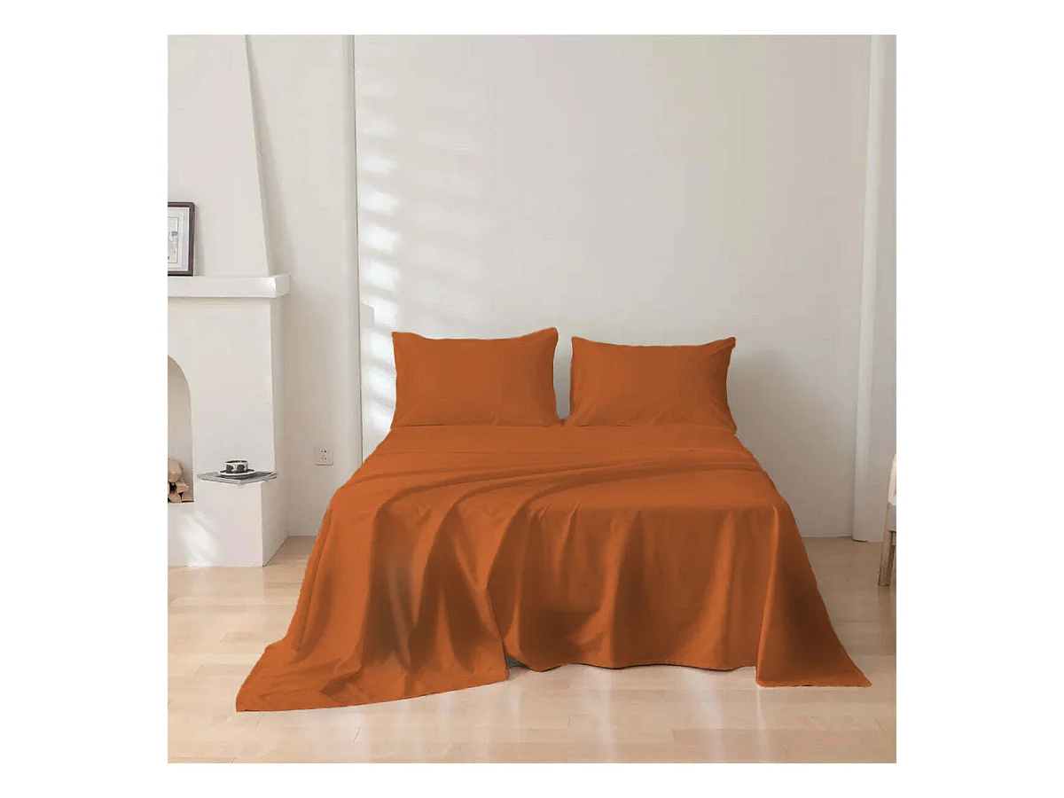 Parure lenzuolo in puro cotone tinta unita arancione scuro (200x290cm)