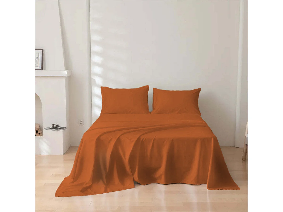 Parure lenzuolo in puro cotone tinta unita arancione scuro (200x290cm)