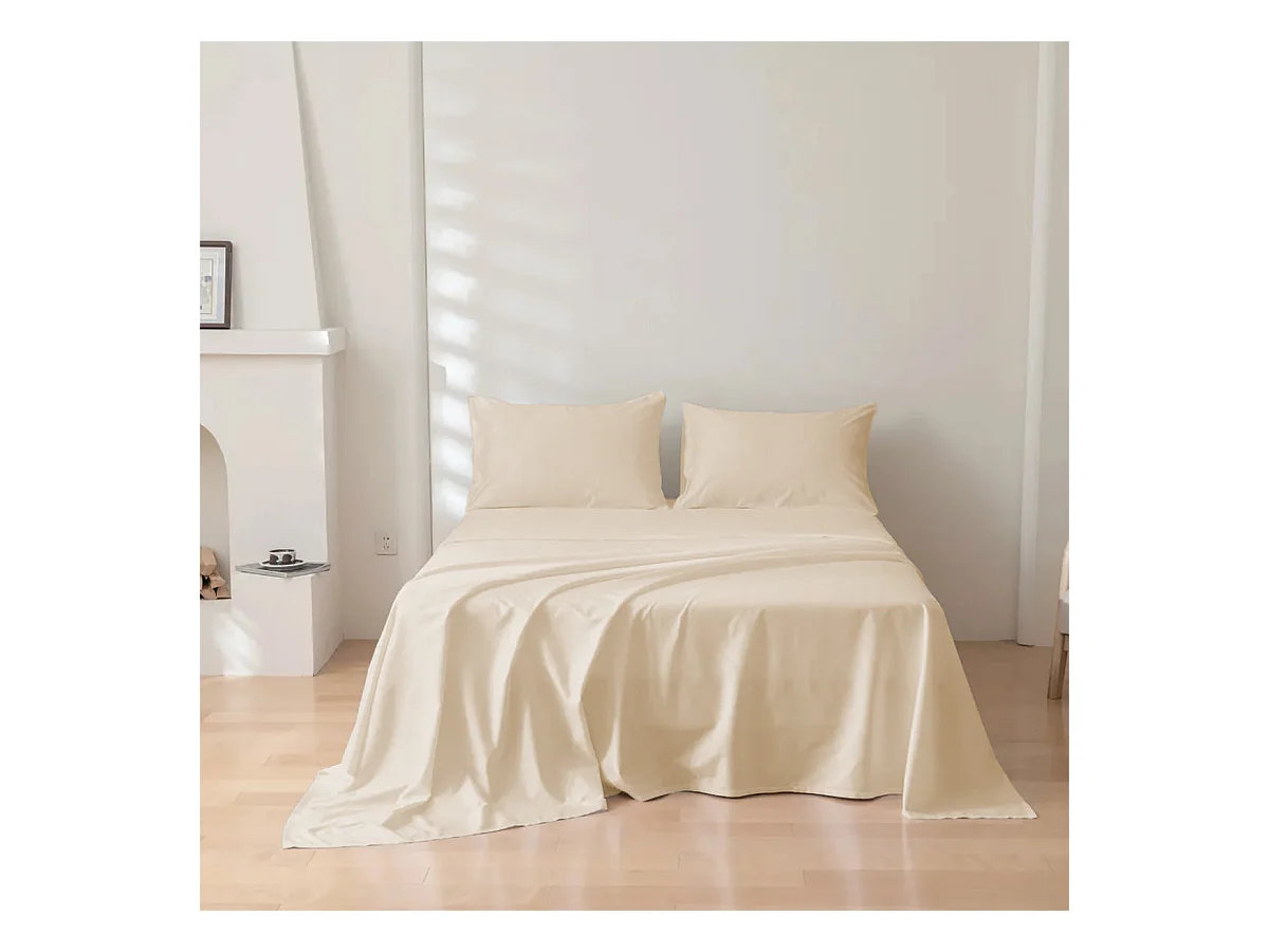 Parure lenzuolo in raso di cotone beige (220x290cm)