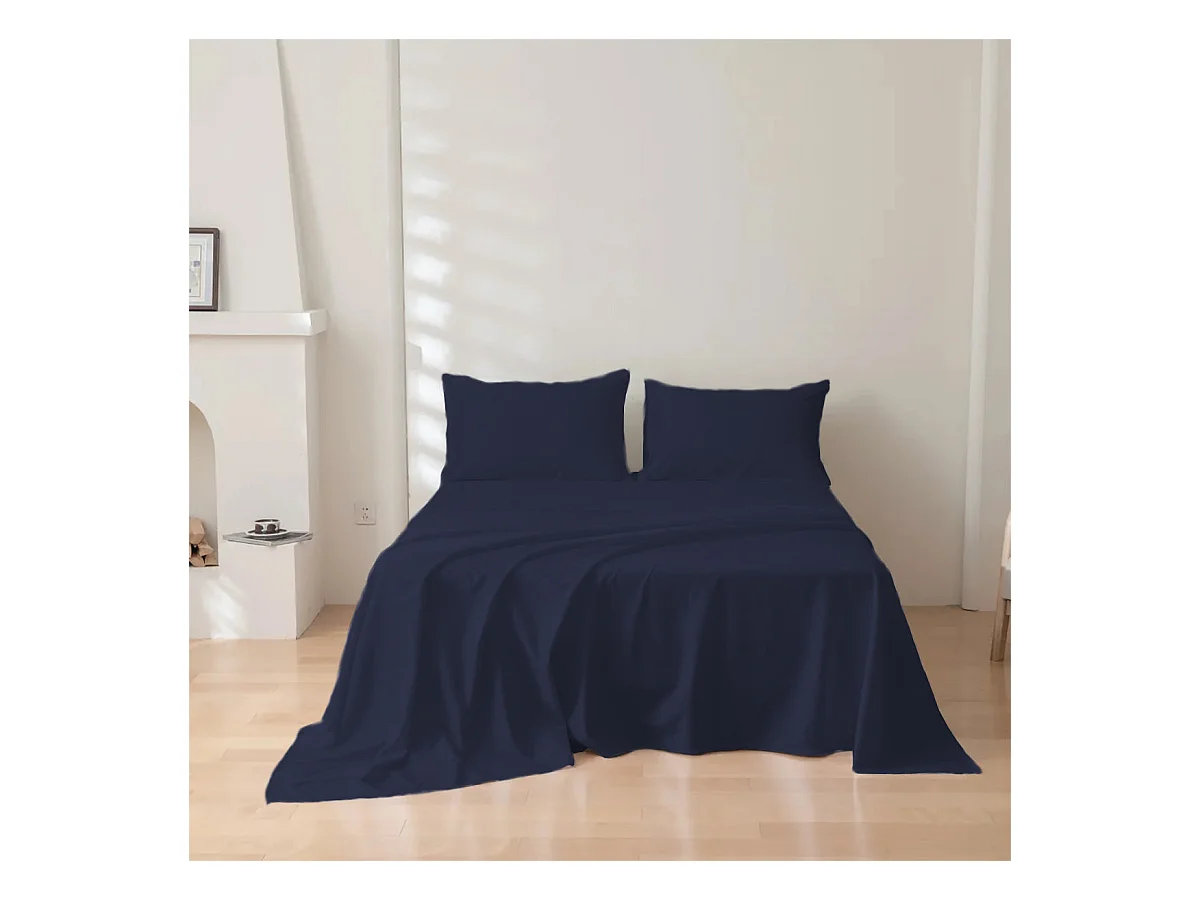 Parure lenzuolo in puro cotone tinta unita blu navy (220x290cm)
