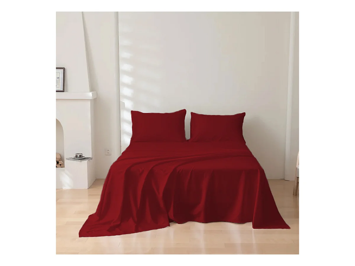 Parure lenzuolo in puro cotone tinta unita bordeaux (160x290cm)