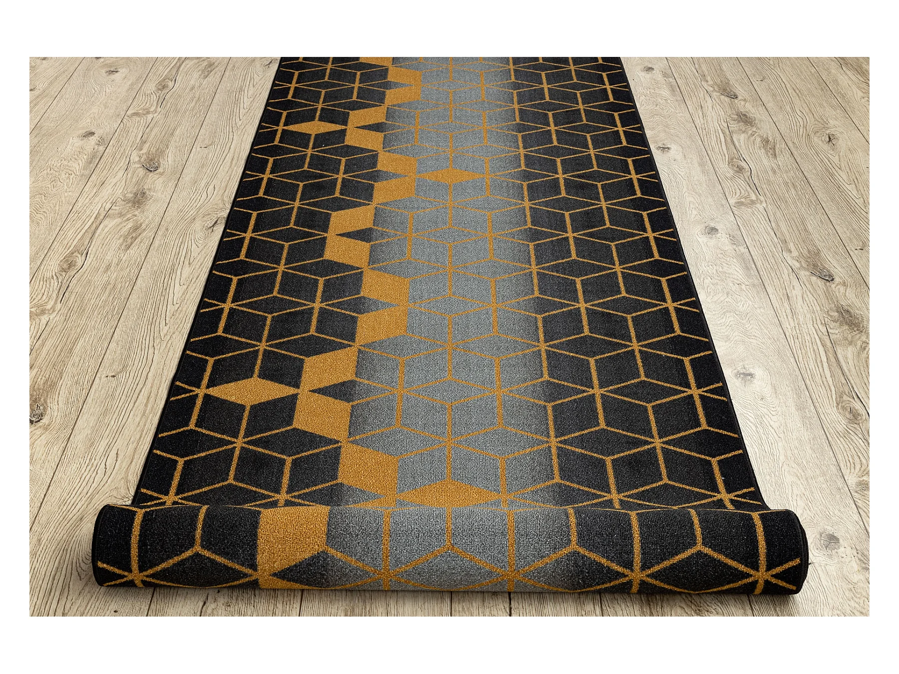 PASSATOIA gommata HEKSAGON Esagono nero / oro 67x250 cm