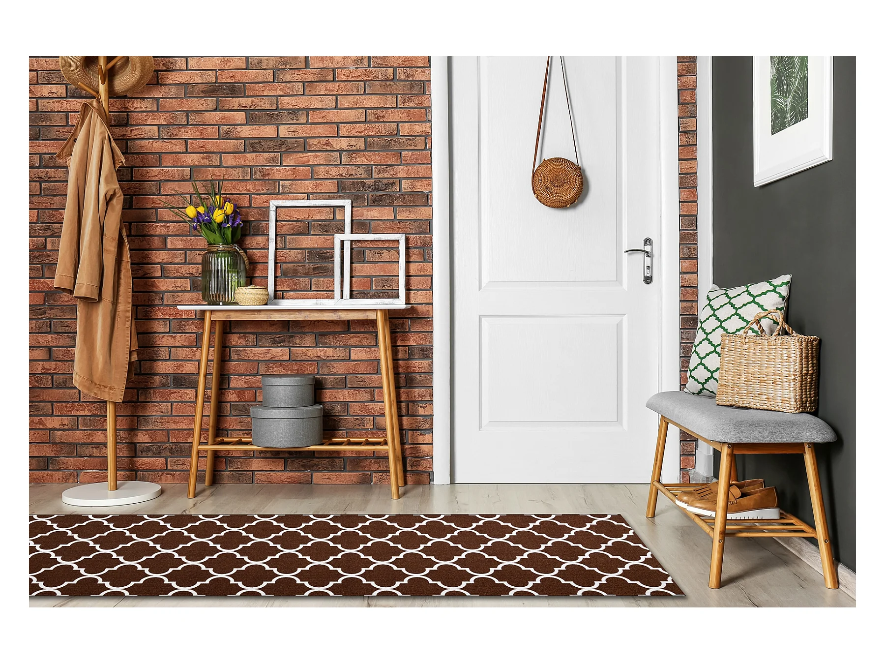 PASSATOIA GOMMATA MAROCCO TRIFOGLIO marrone TRELLIS 30351 100x990 cm