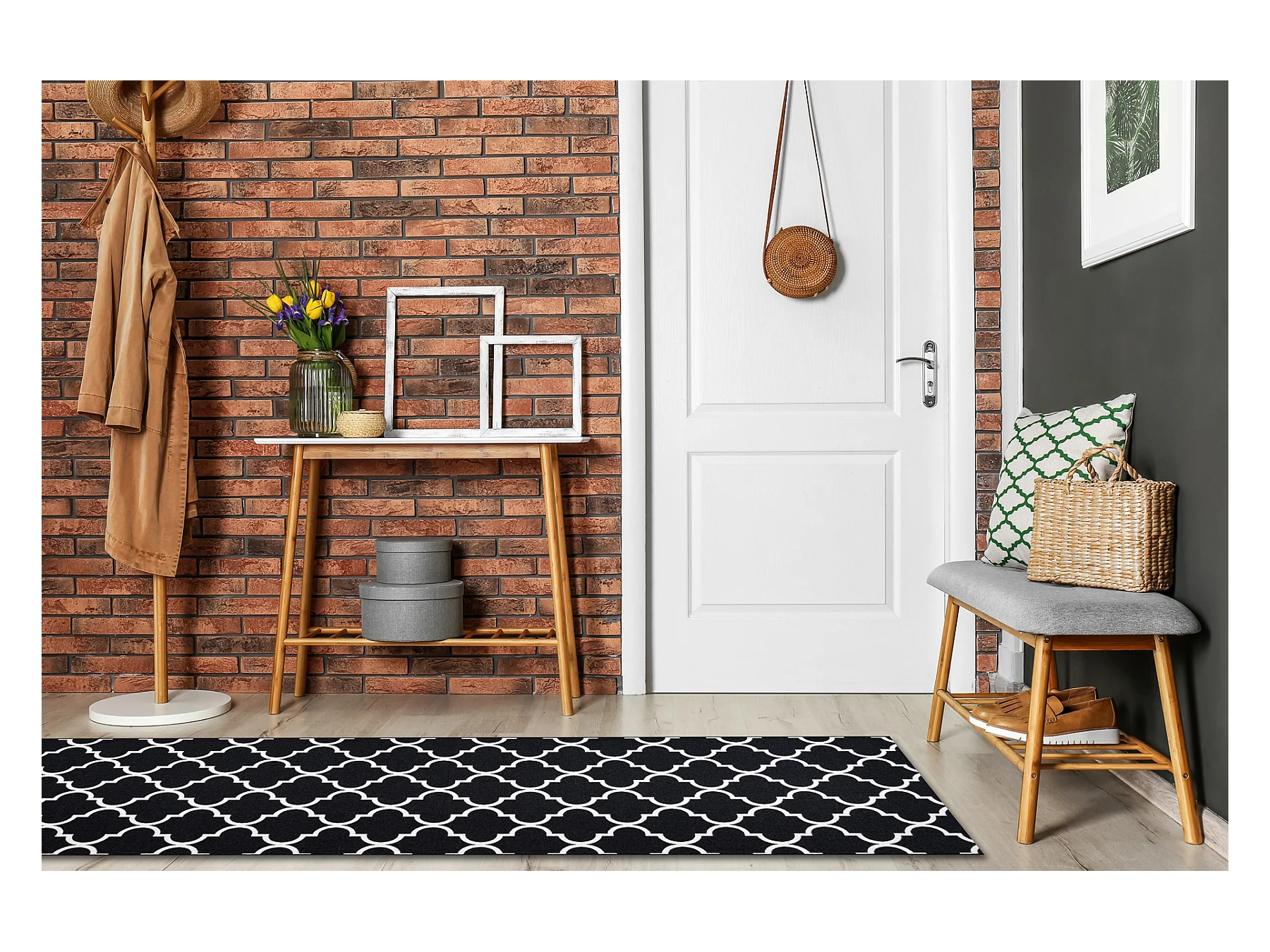 PASSATOIA GOMMATA MAROCCO TRIFOGLIO nero TRELLIS 30350 90x530 cm