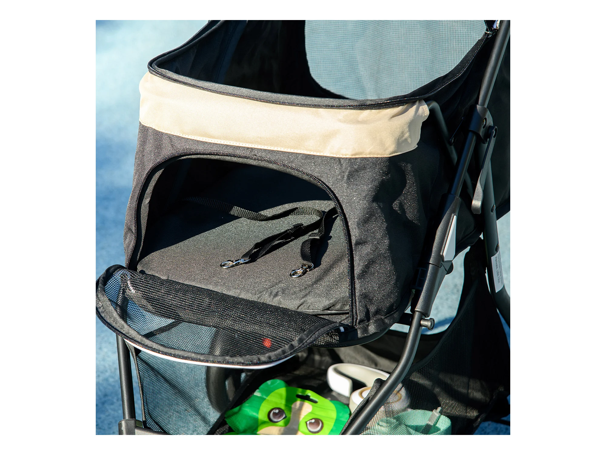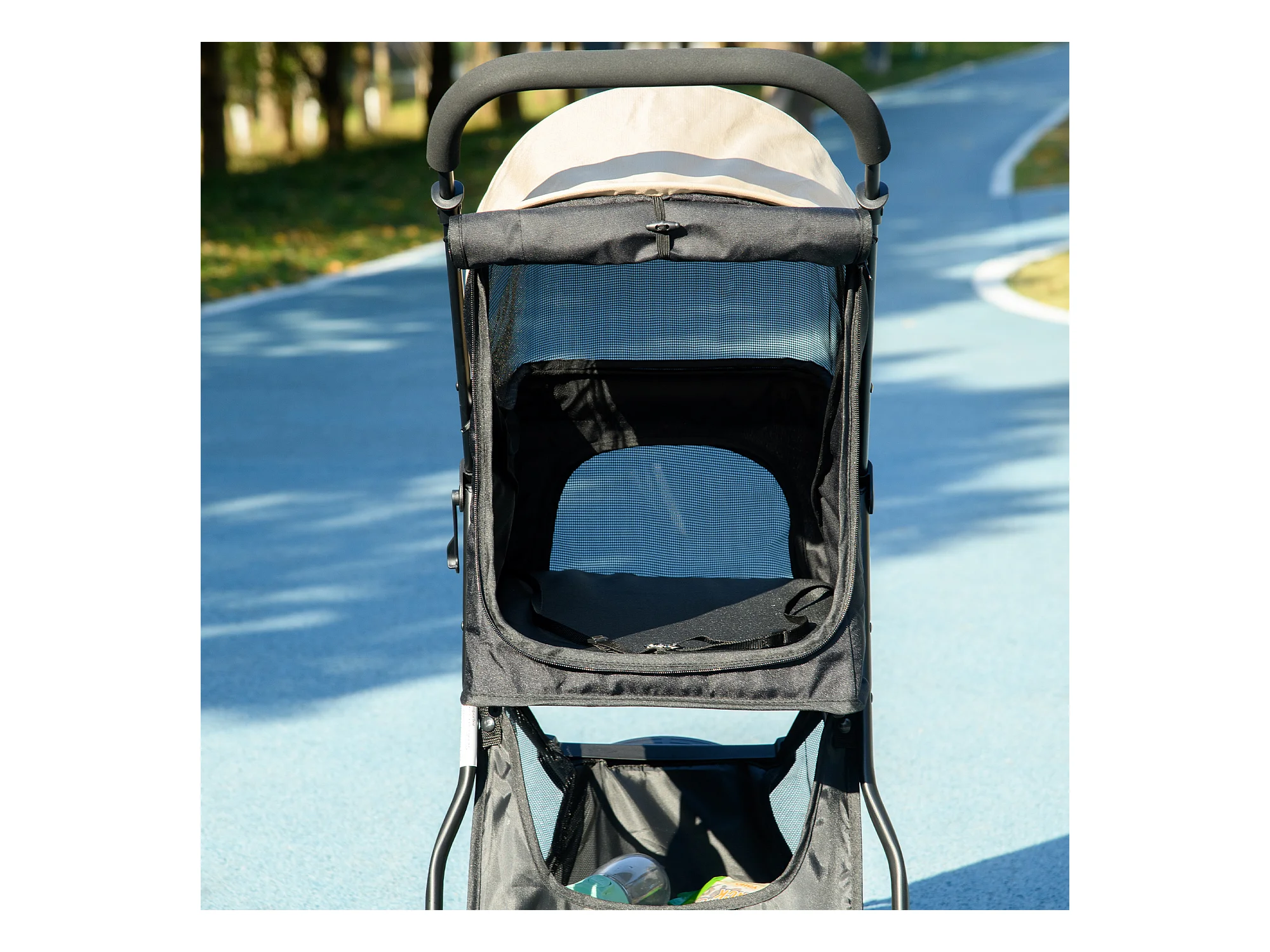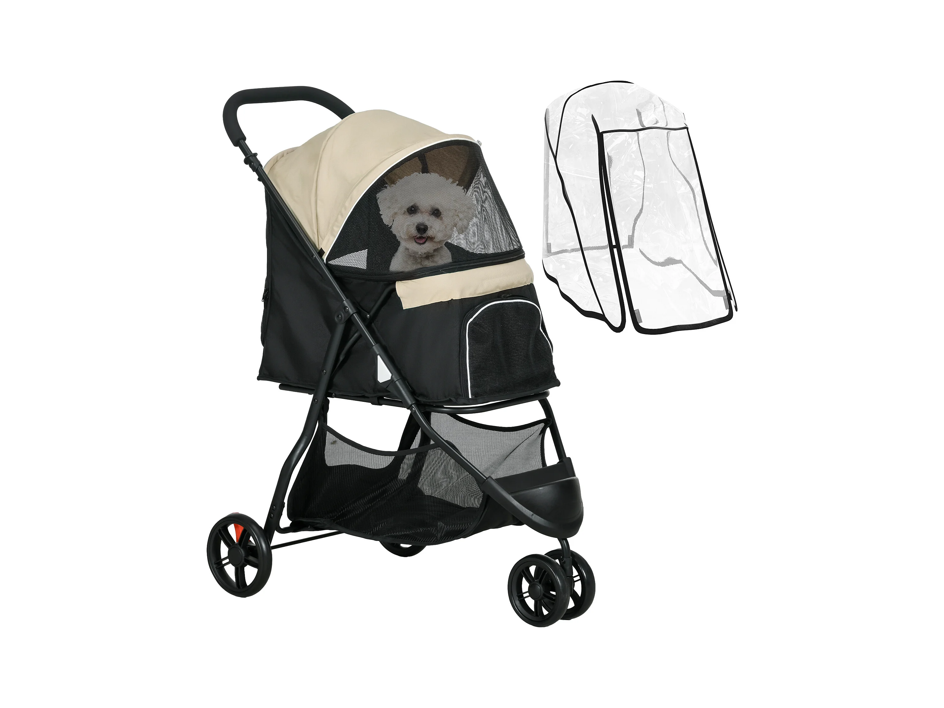 Passeggino cani pieghevole 3 ruote con copertura antipioggia khaki