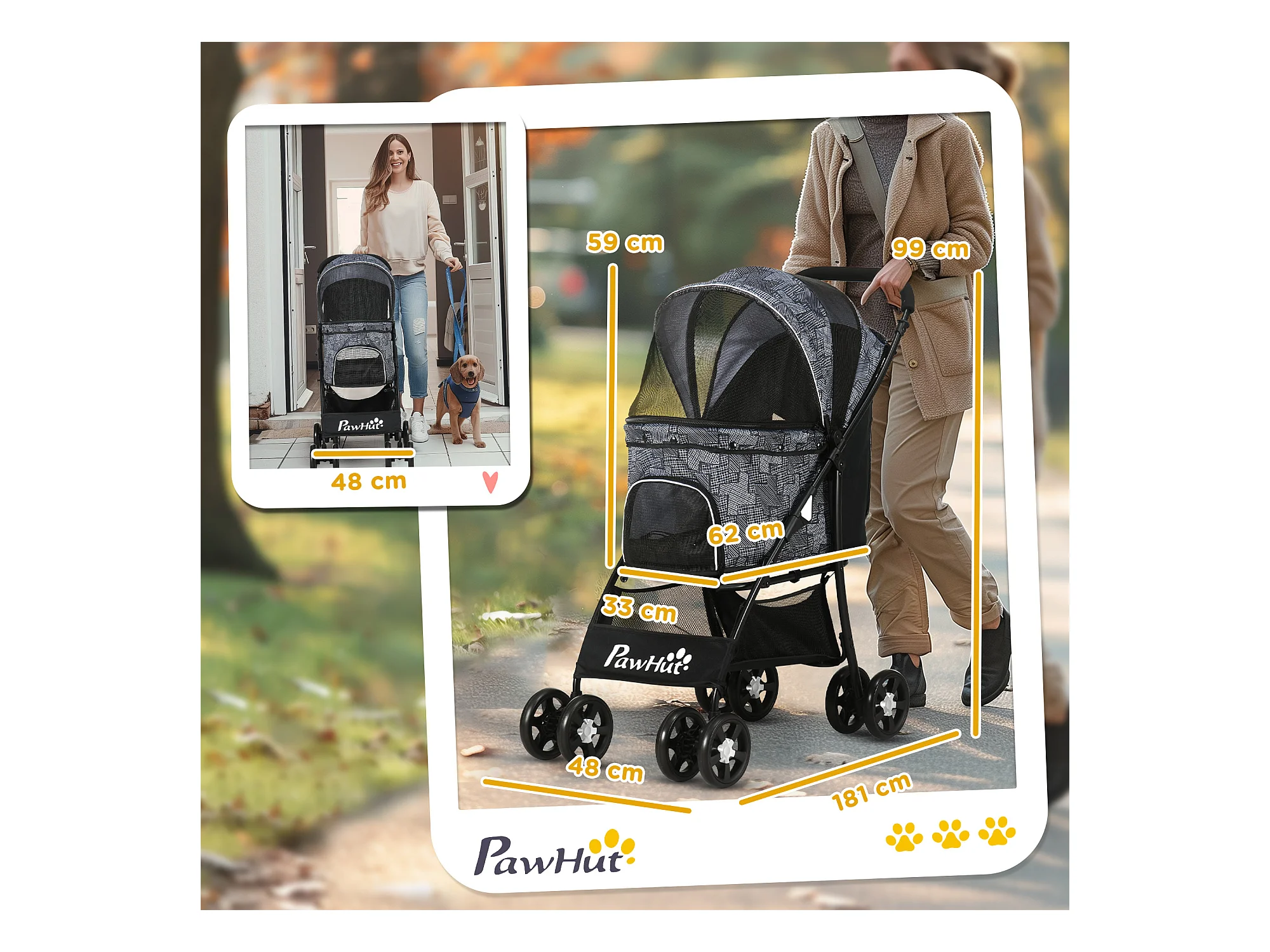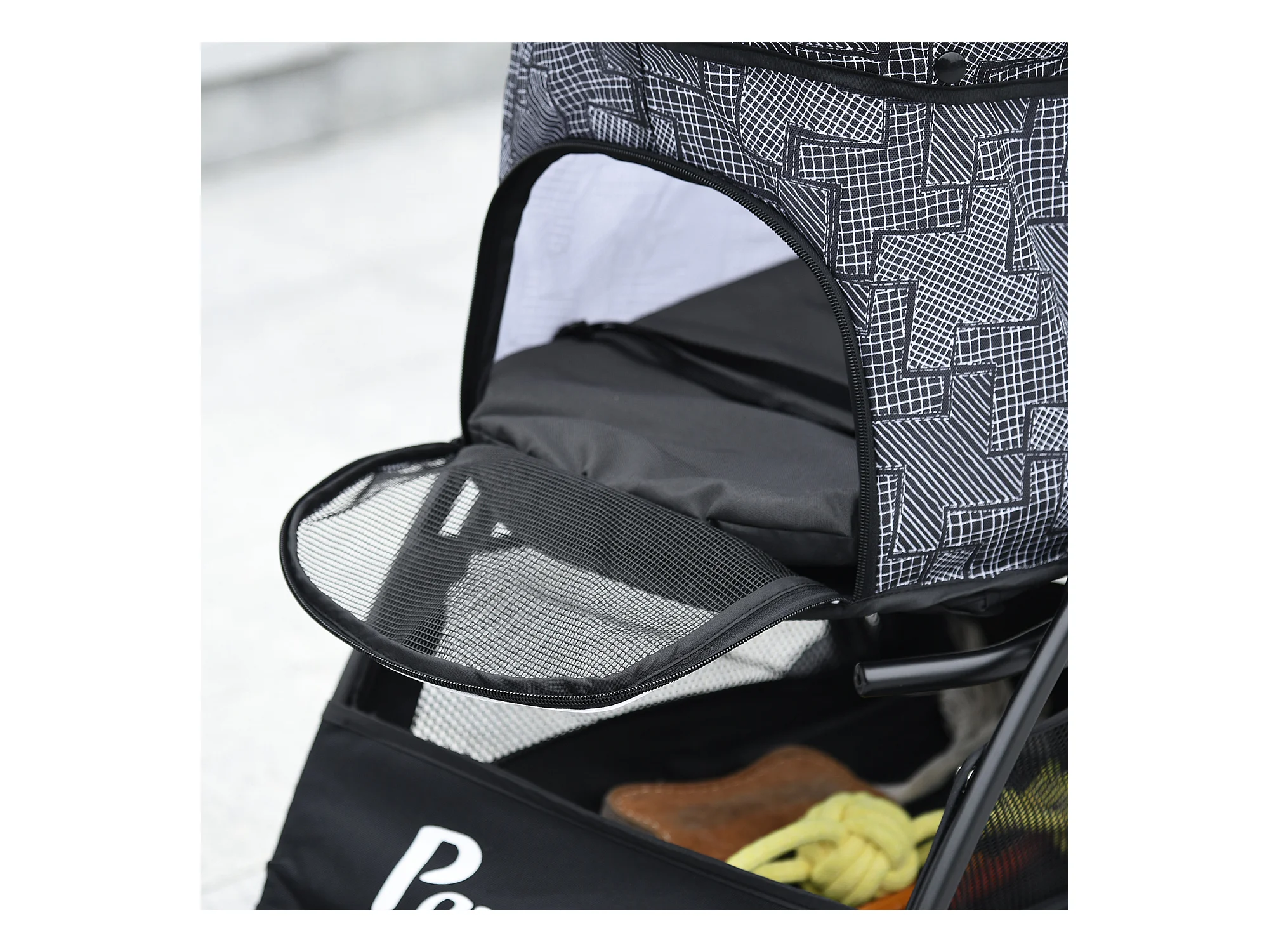 Passeggino per cani pieghevole 3 ruote con freno e cestino grigio nero