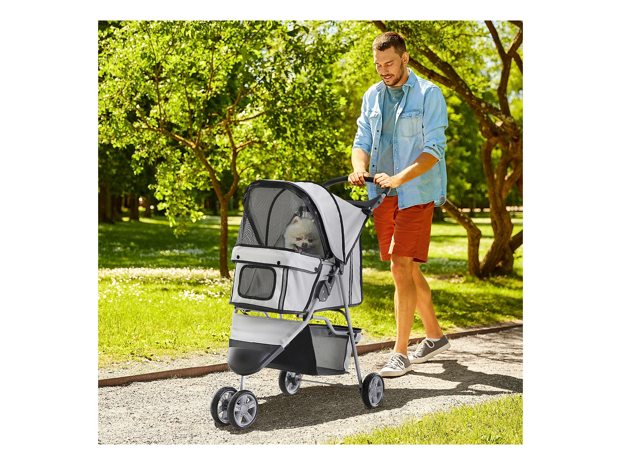 Passeggino per cani pieghevole 3 ruote con freno e cestino grigio nero