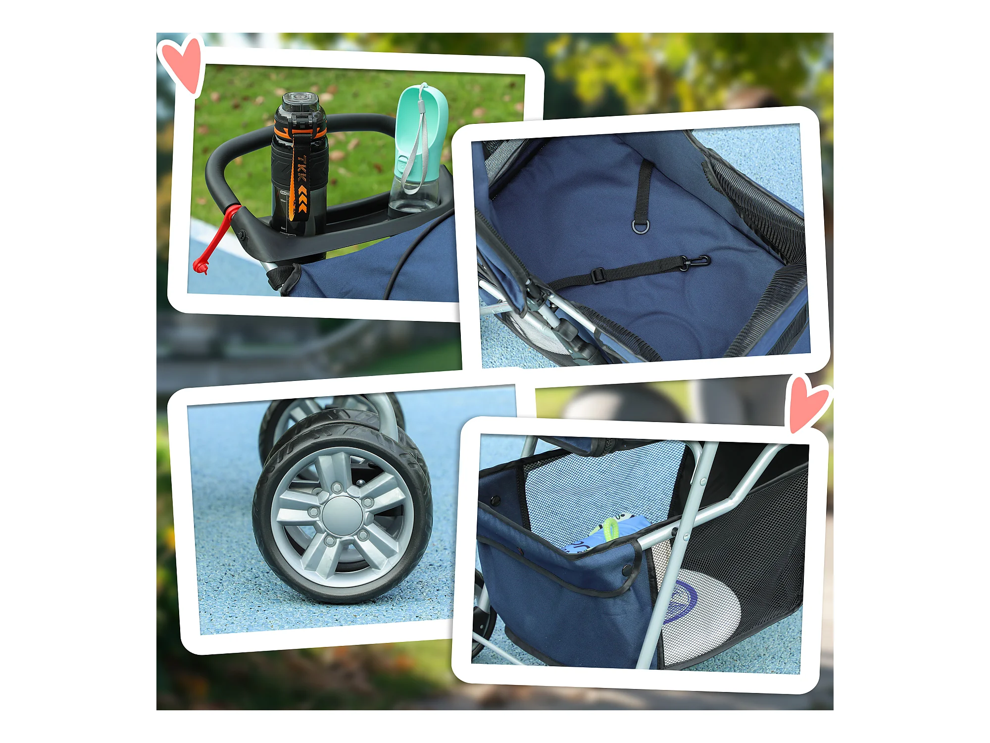 Passeggino per cani 3 in 1 pieghevole con trasportino e cestino blu