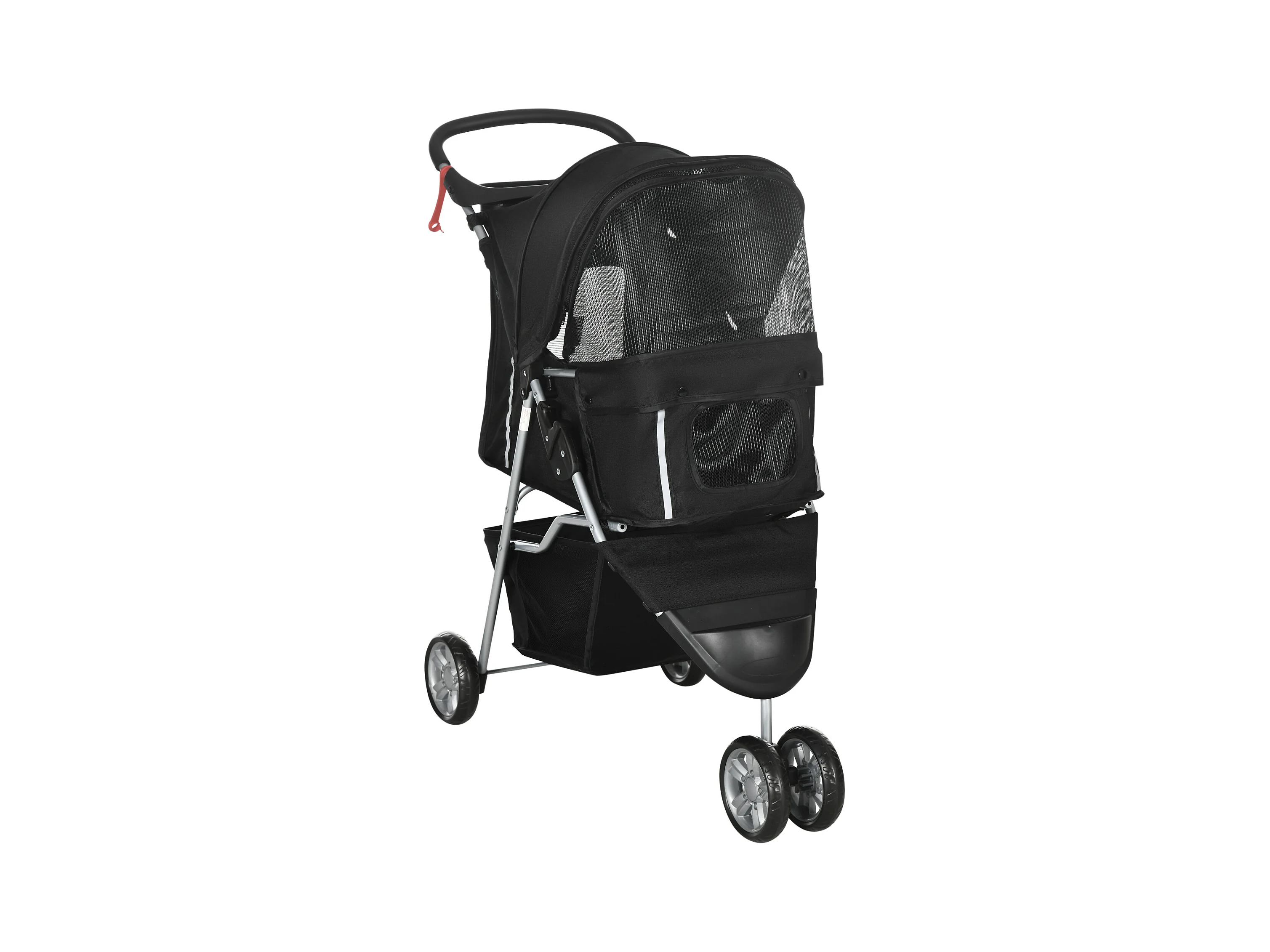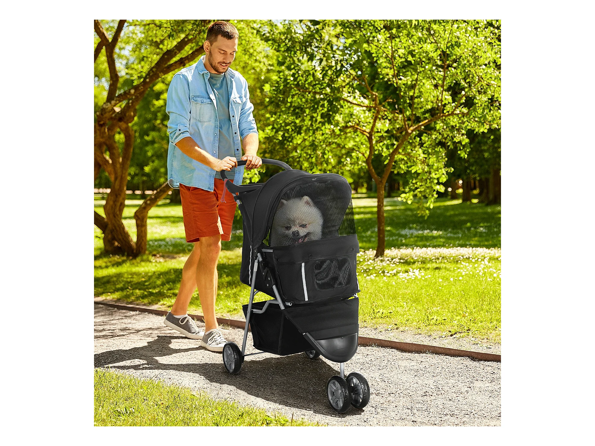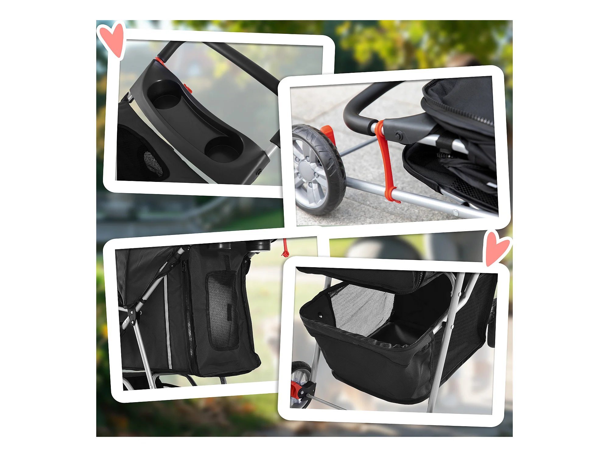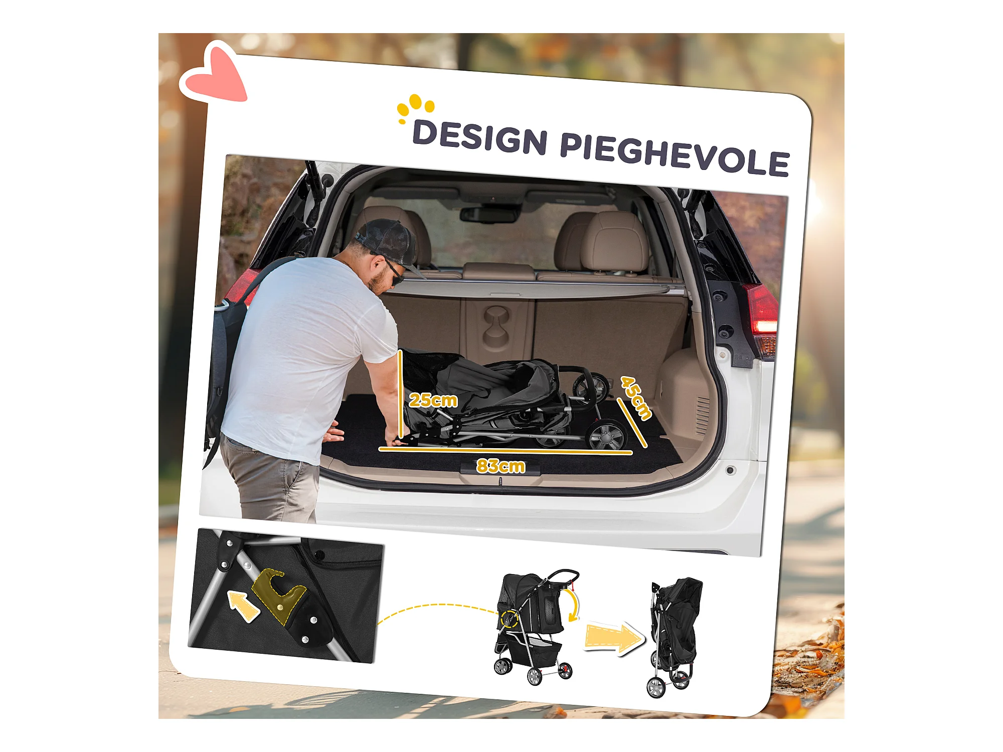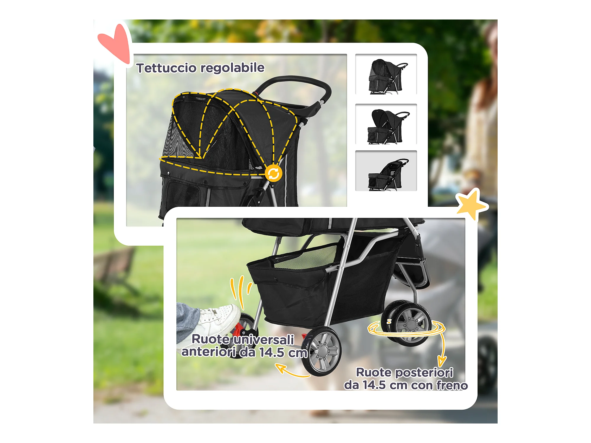 Passeggino per cani pieghevole ruote girevoli cestino portaoggetti nero