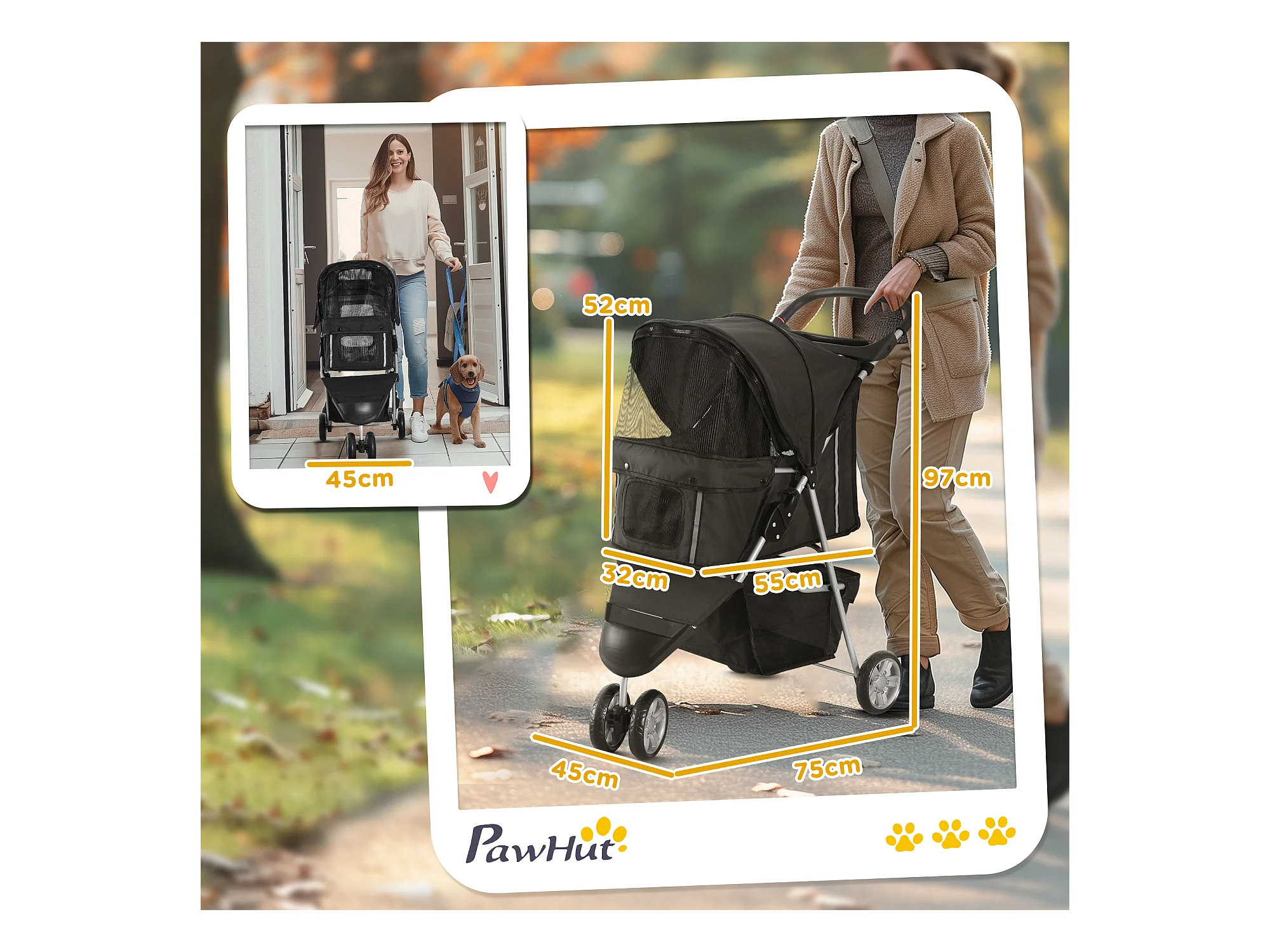 Passeggino per cani piccoli pieghevole con freno e ruote girevoli, nero