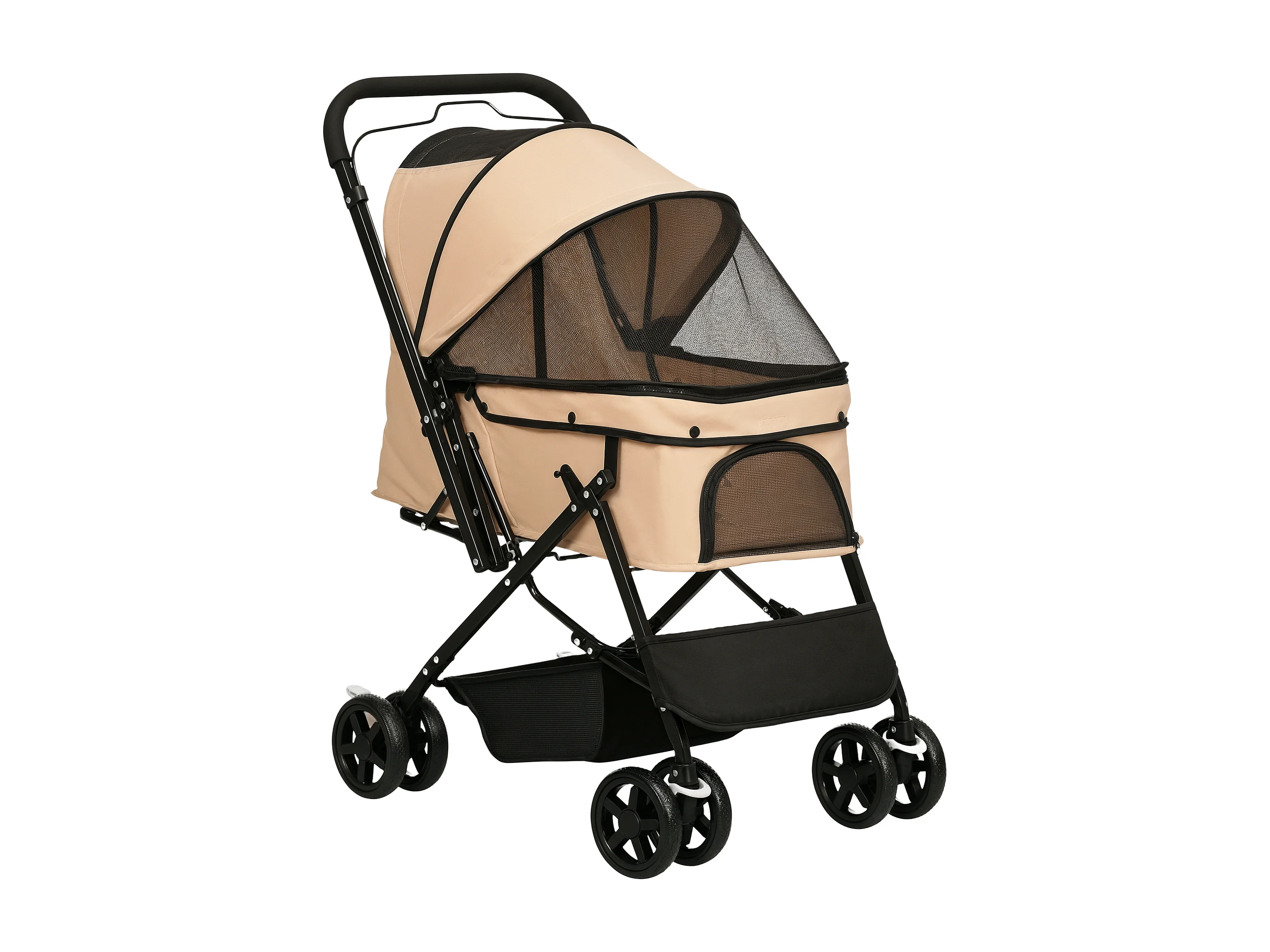 Passeggino per cani e gatti di piccola taglia, design pieghevole con tetto regolabile, poliestere marrone (76,5x52x95 cm)