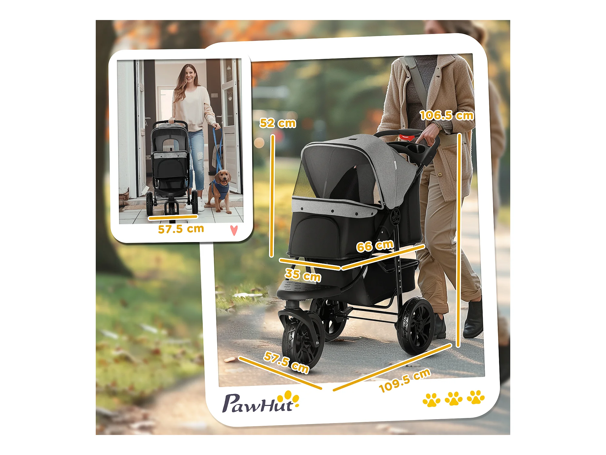 Passeggino per cani pieghevole 3 ruote con freno e cestino grigio nero