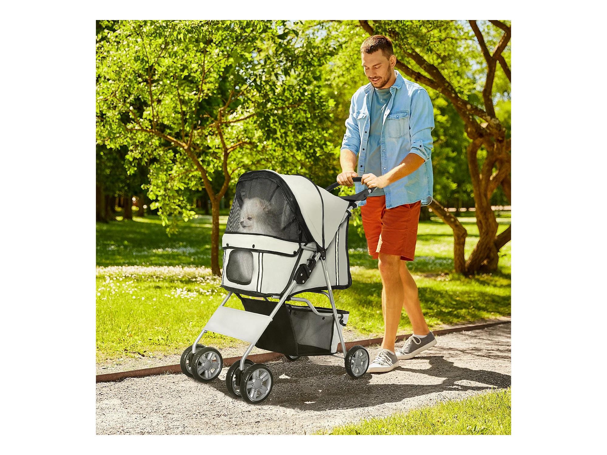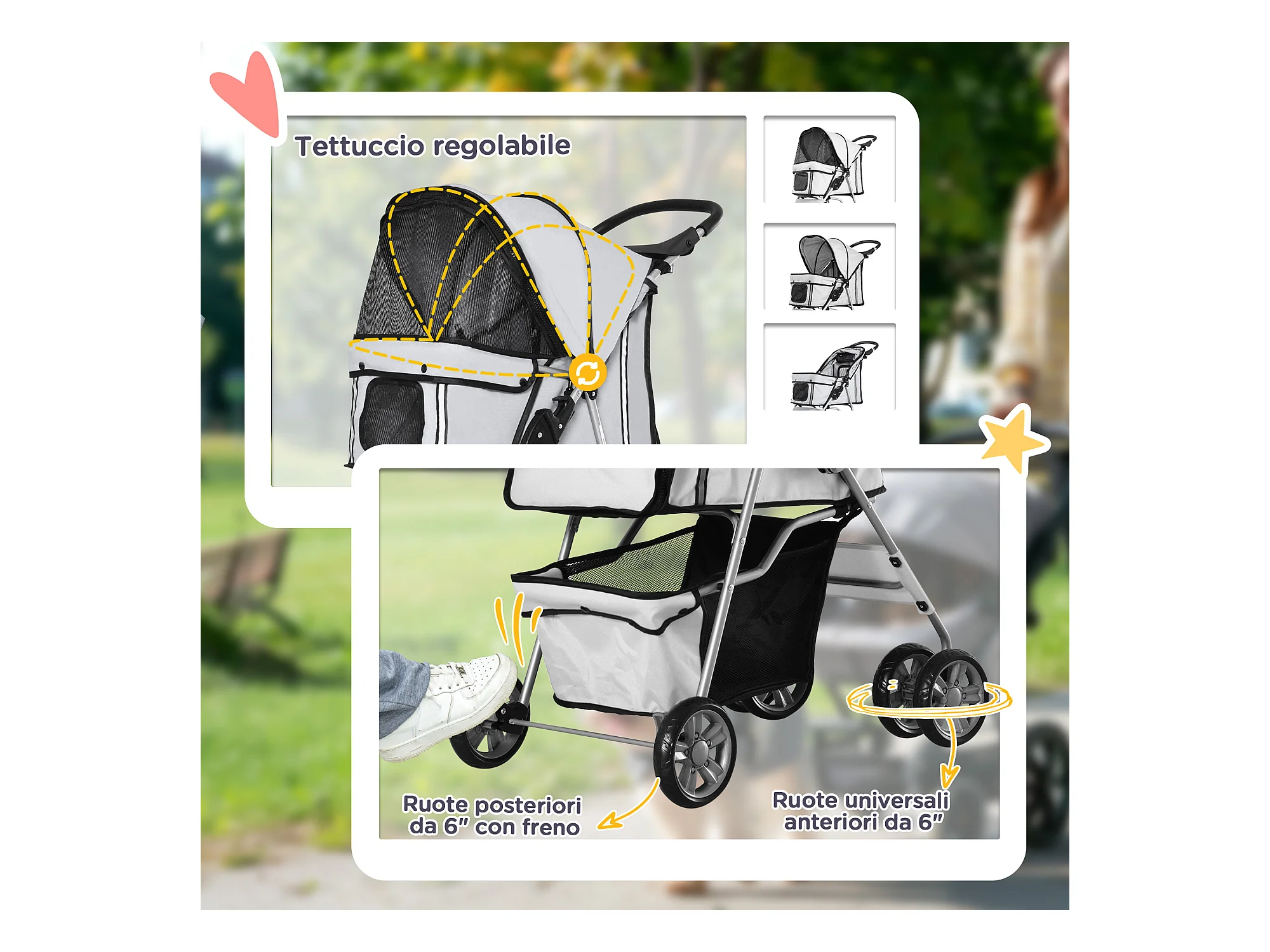 Passeggino per cani pieghevole 3 ruote con freno e cestino grigio nero